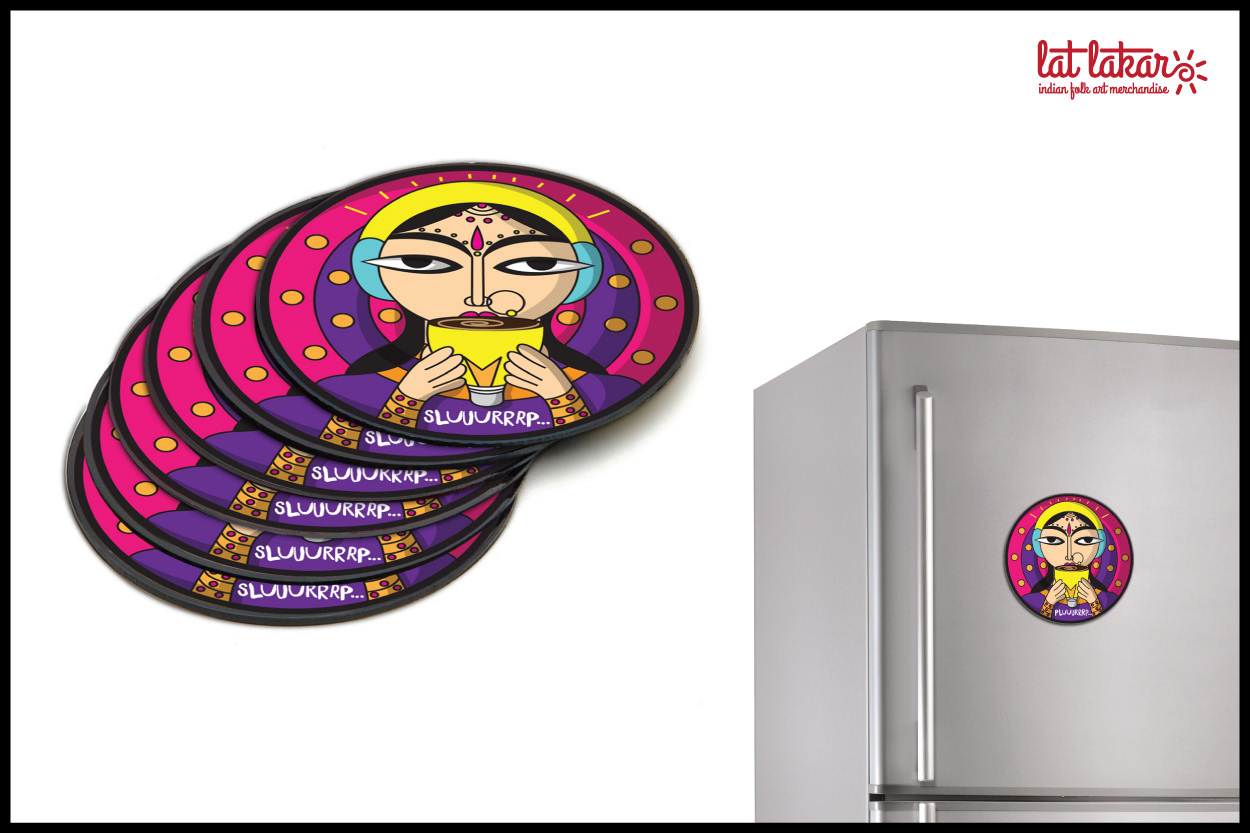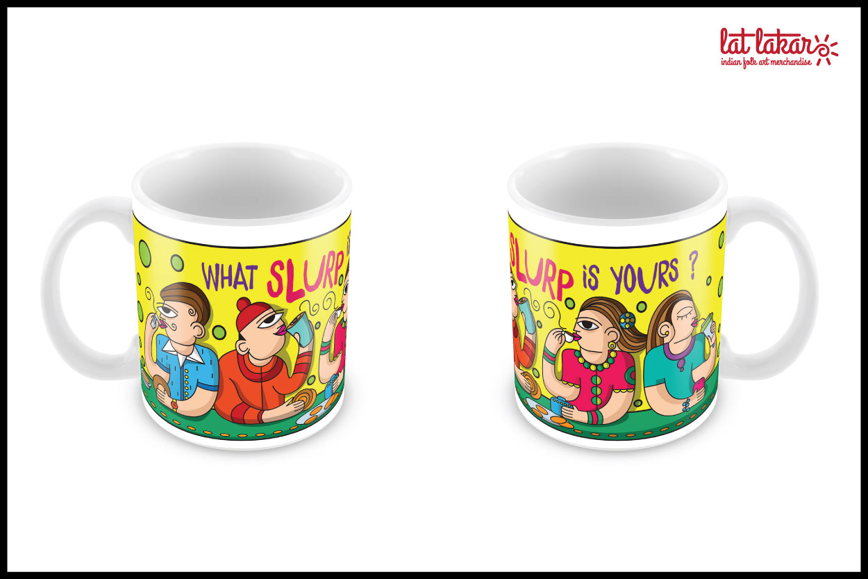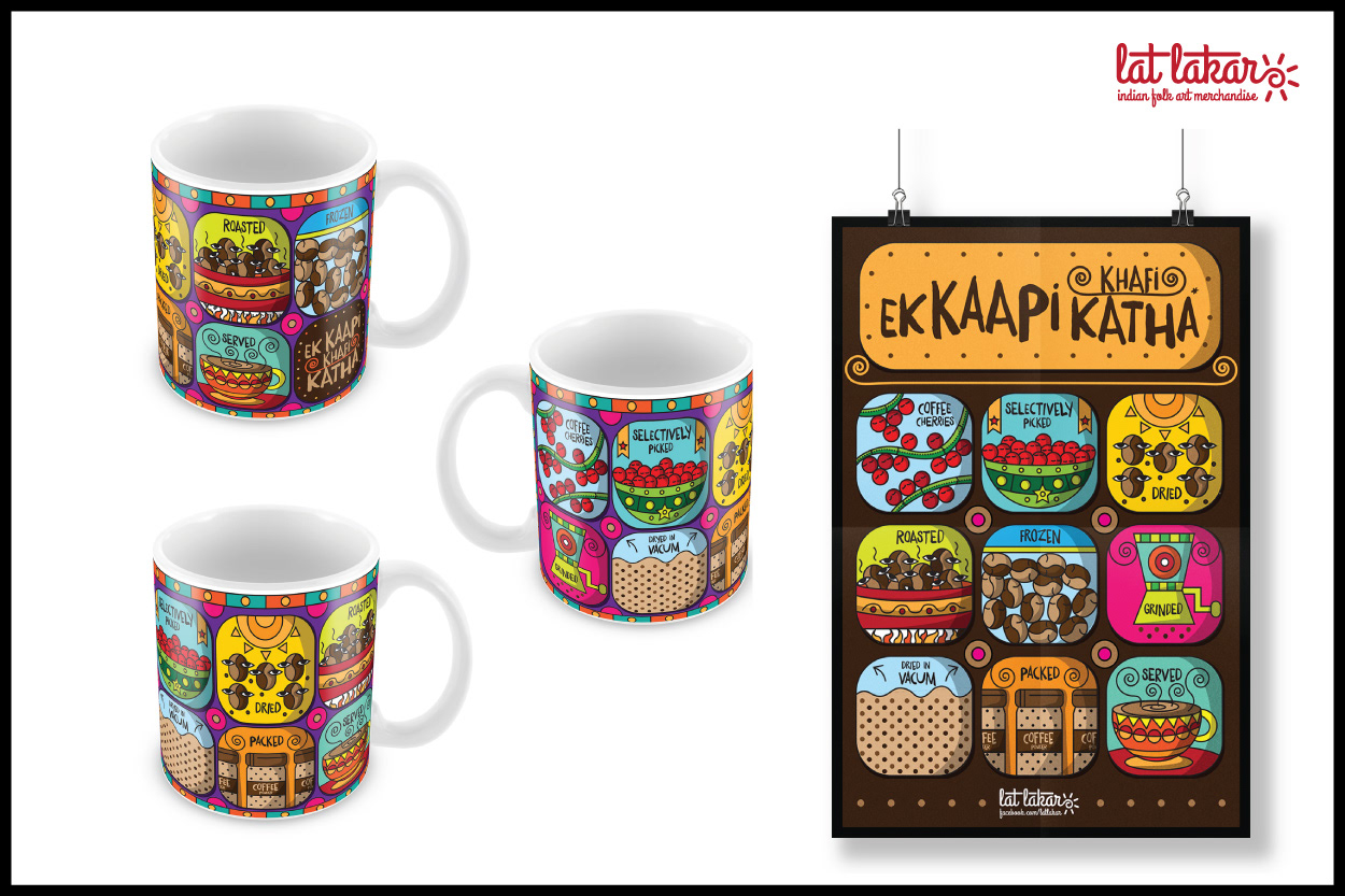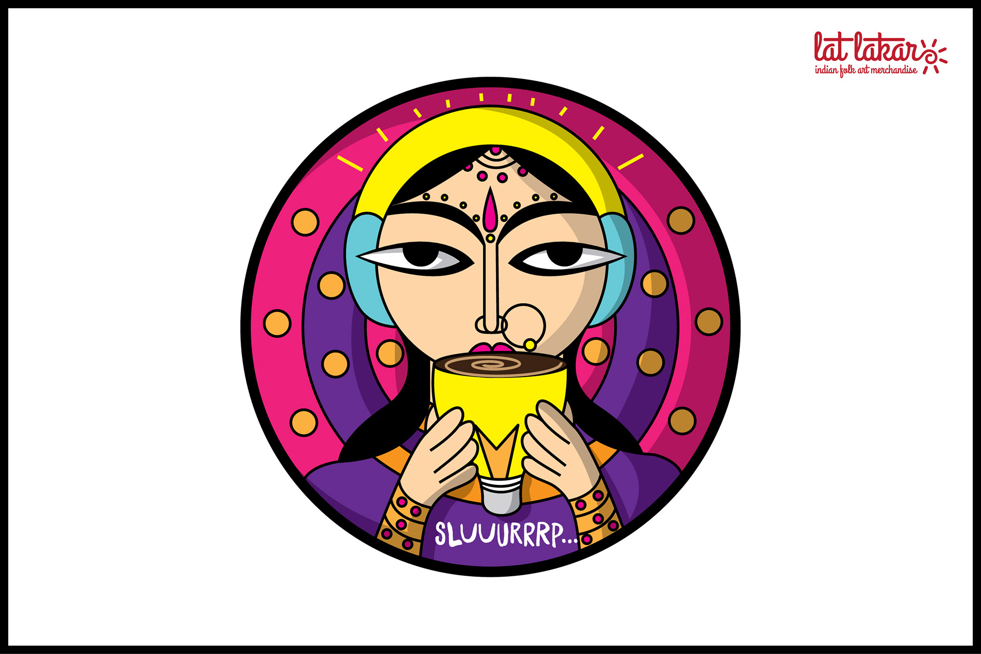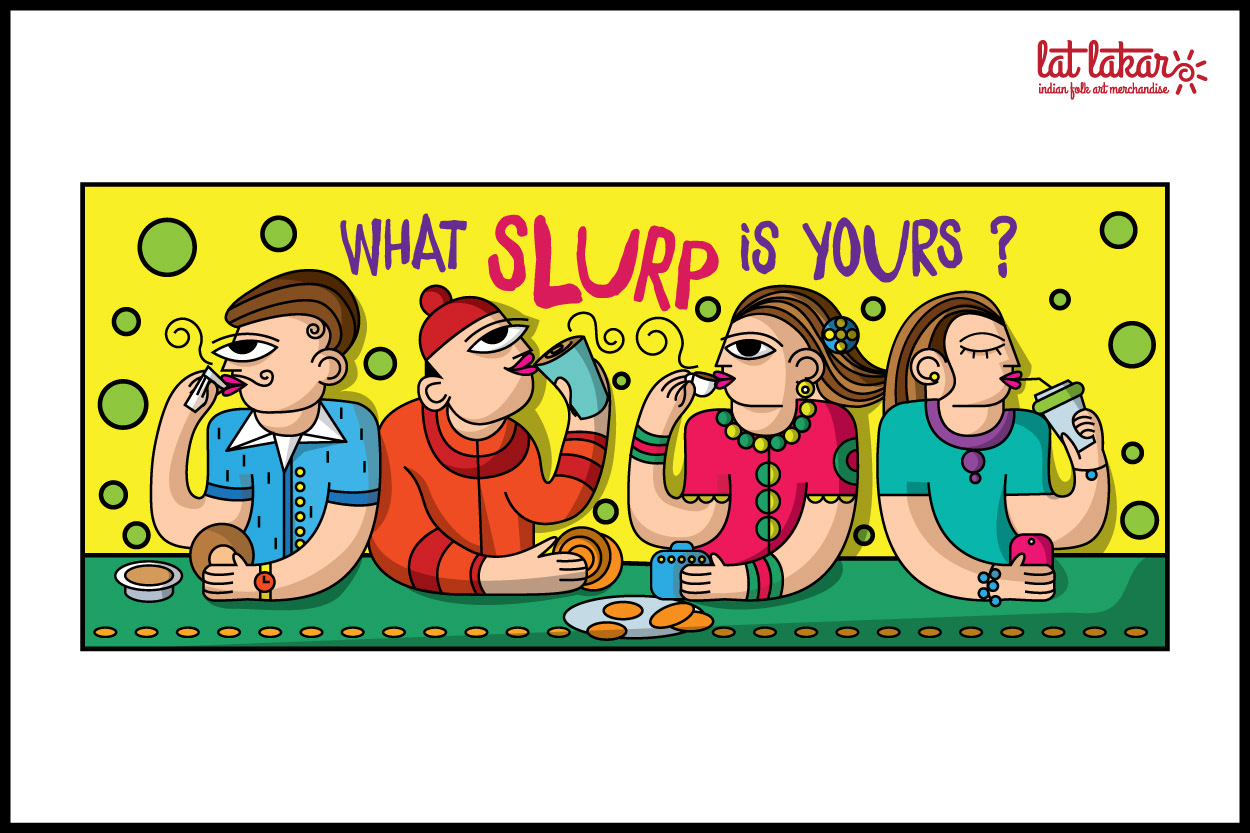 Designed in the traditional Bengali style of Indian art, this piece illustrates how different people from different parts of our country ‘slurp’ their coffee everyday. Slurp on, people!
