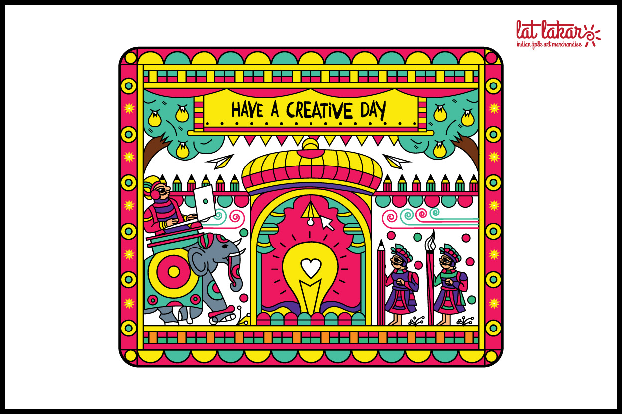 This particular design is one of our favourites. Drawn in traditional Pattachitra style, it conveys how we all carry our creative streak around with us wherever we go.