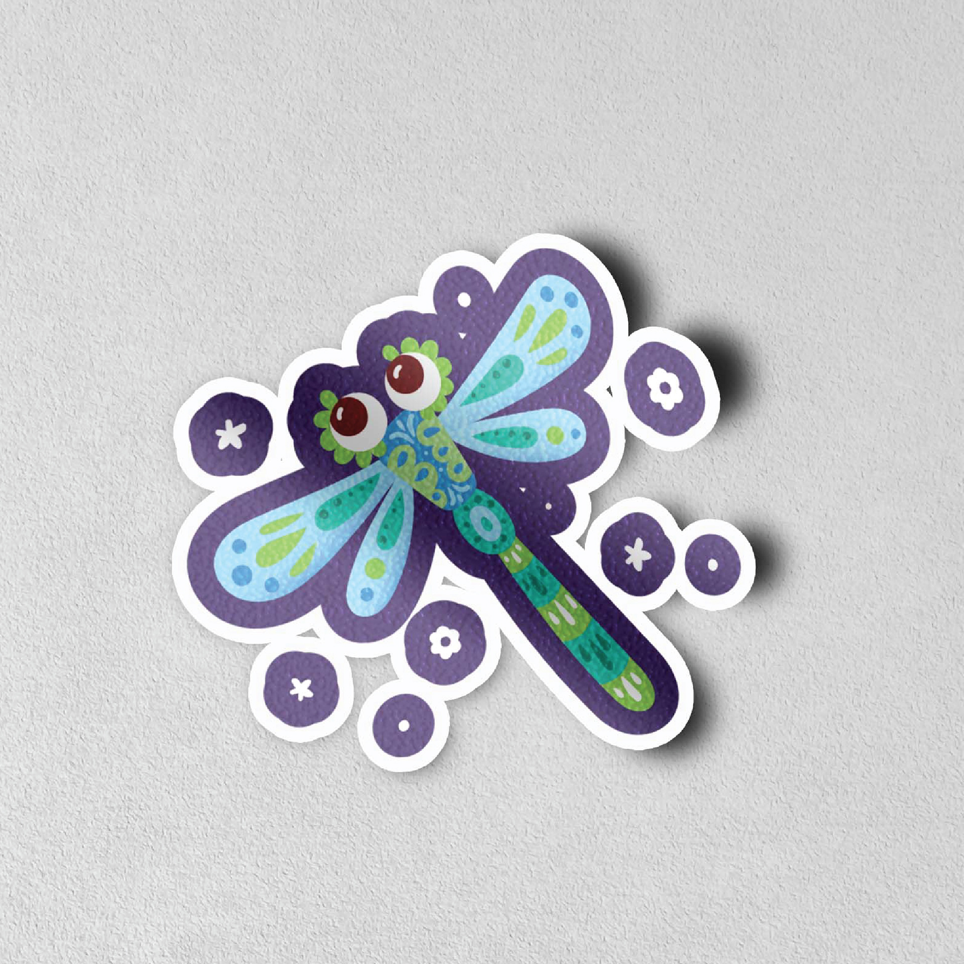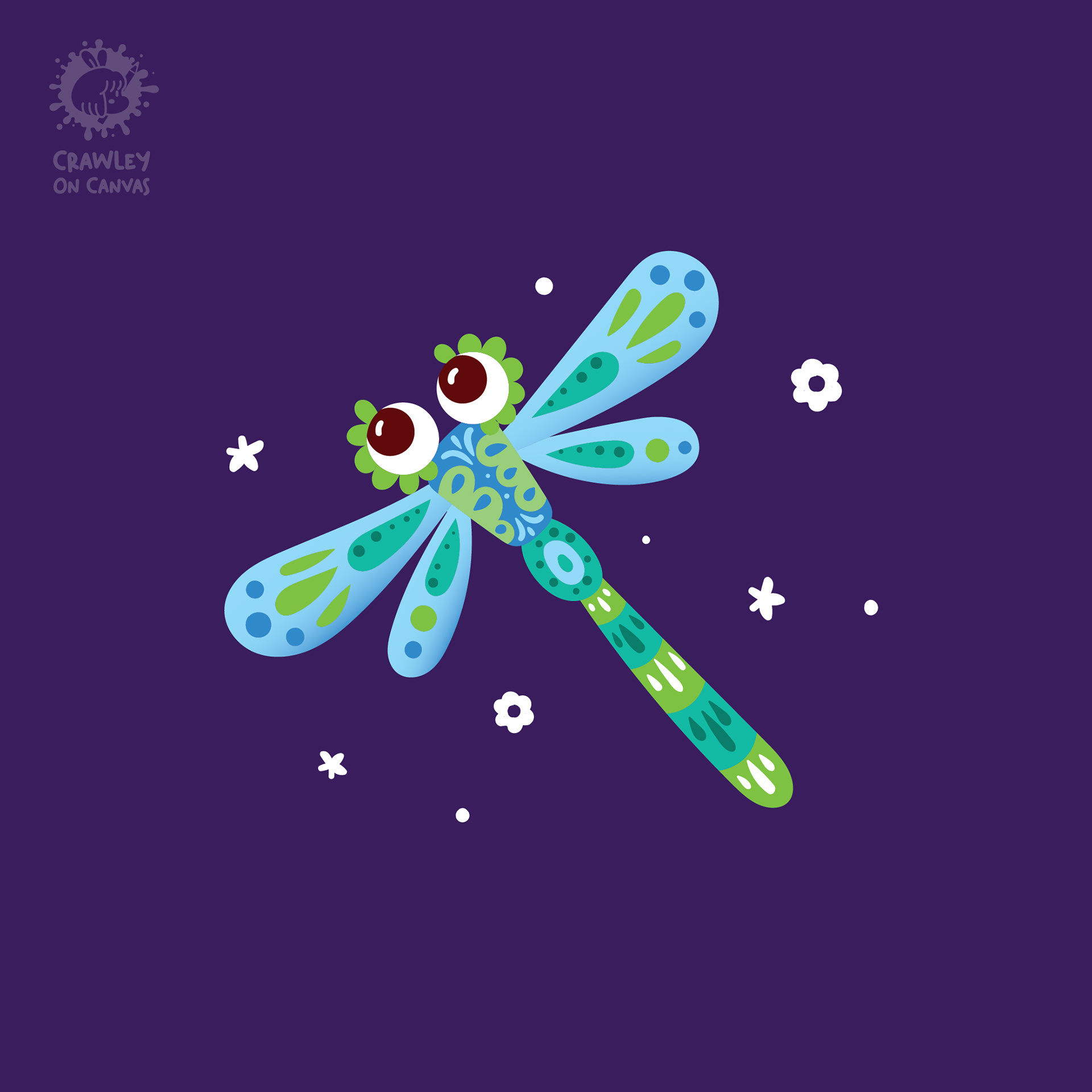The blue and green combination of the Dragonfly with it's popping eyes and the green petals make it look a being closest to nature and it's charm