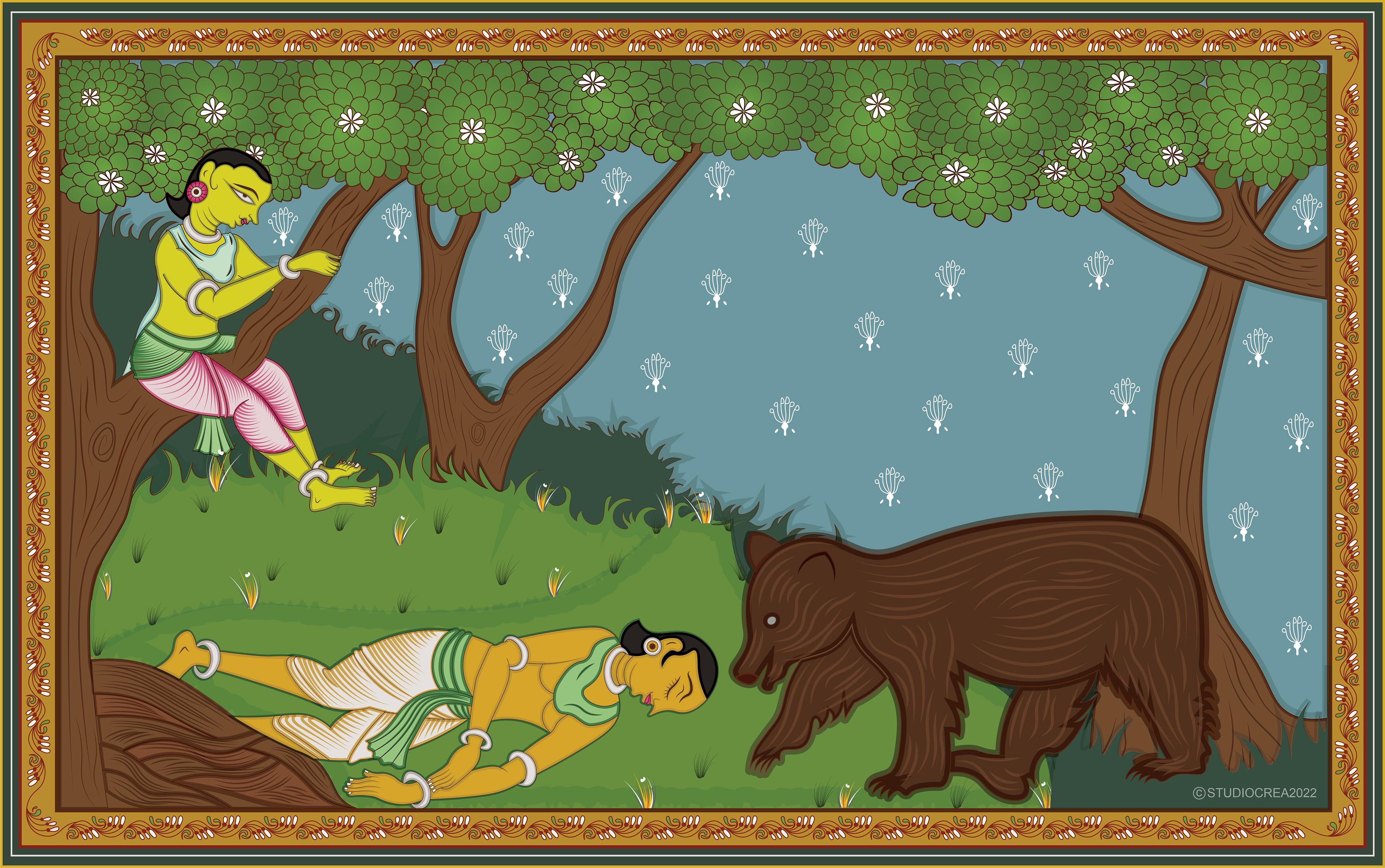 We chose a popular Indian folklore style 'The Orissa Pattachitra' for this translation.