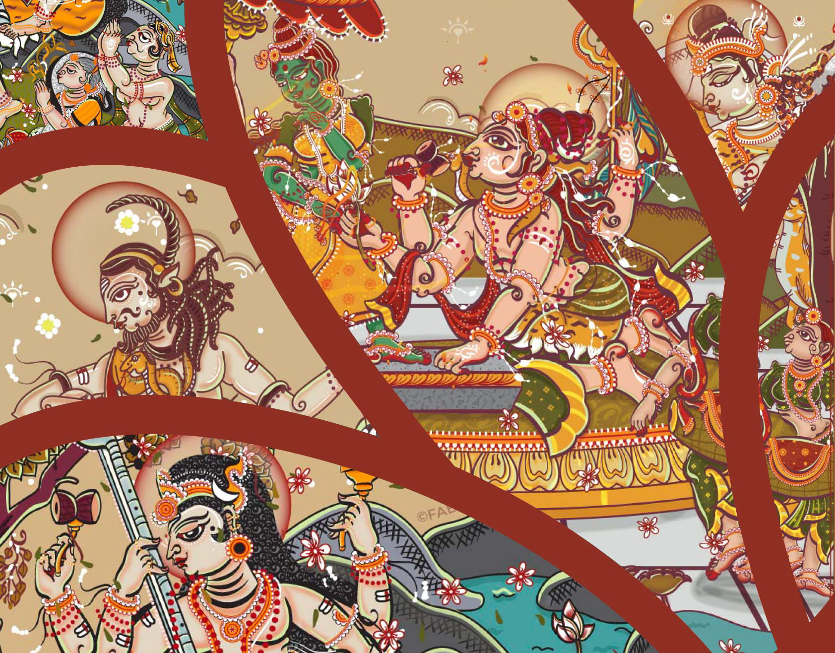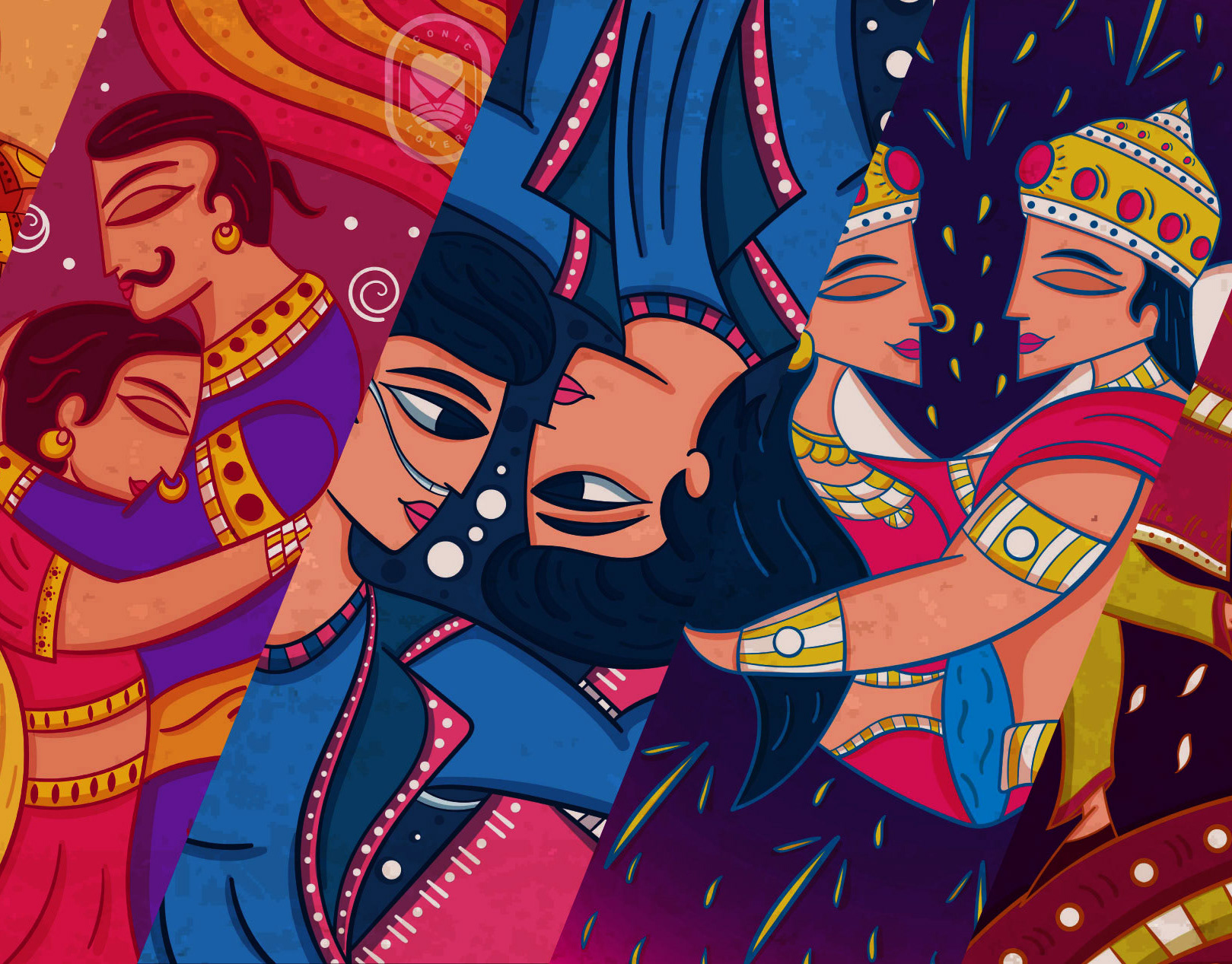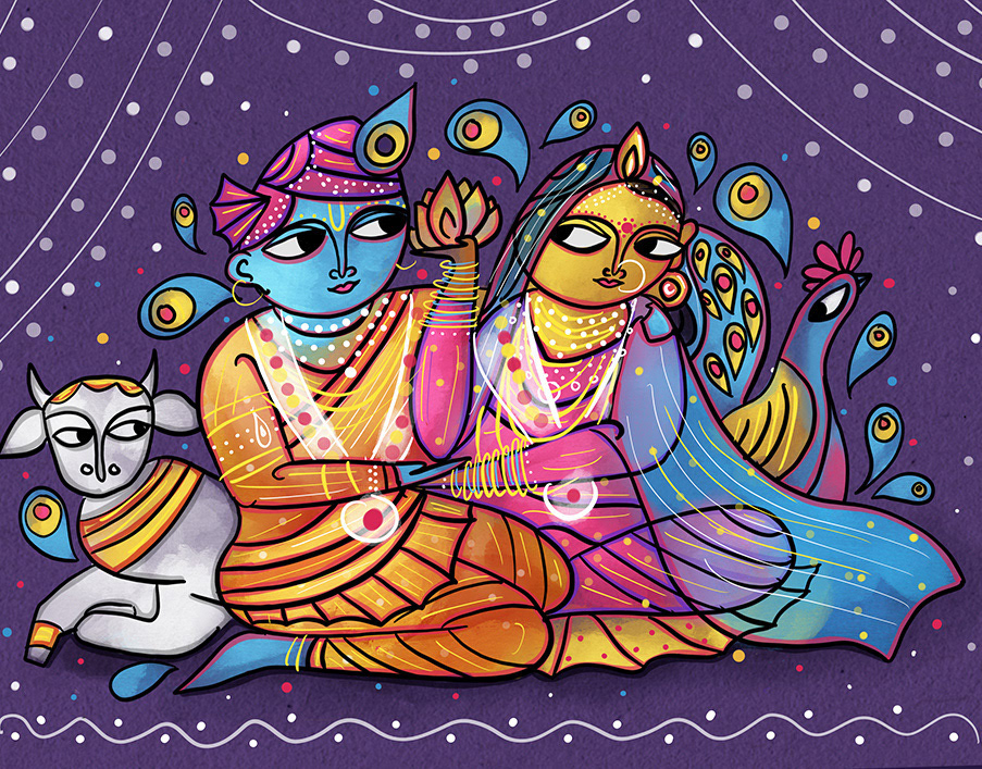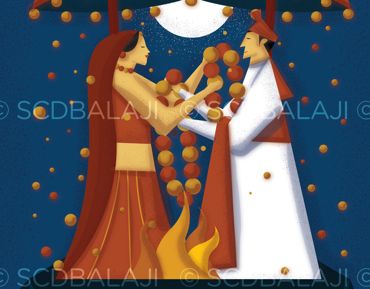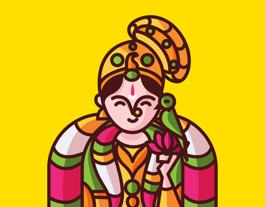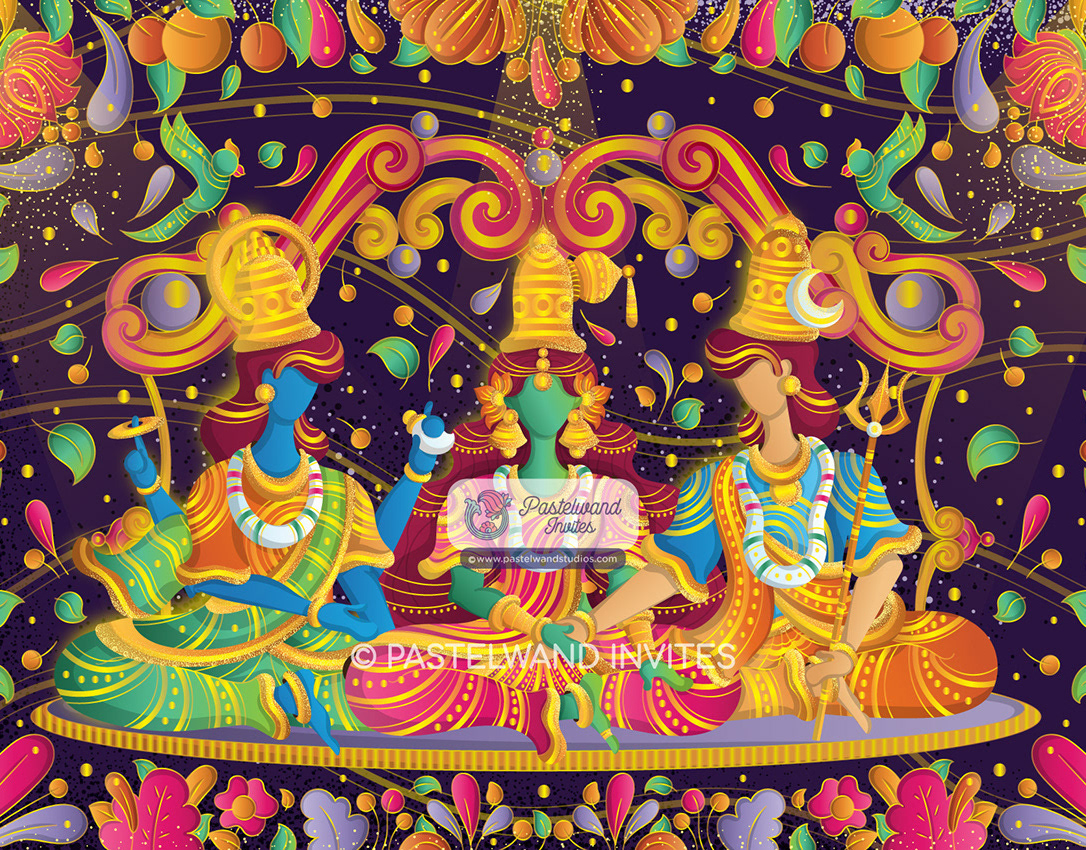 12 Hindu God Couple Illustration - Art Deco style