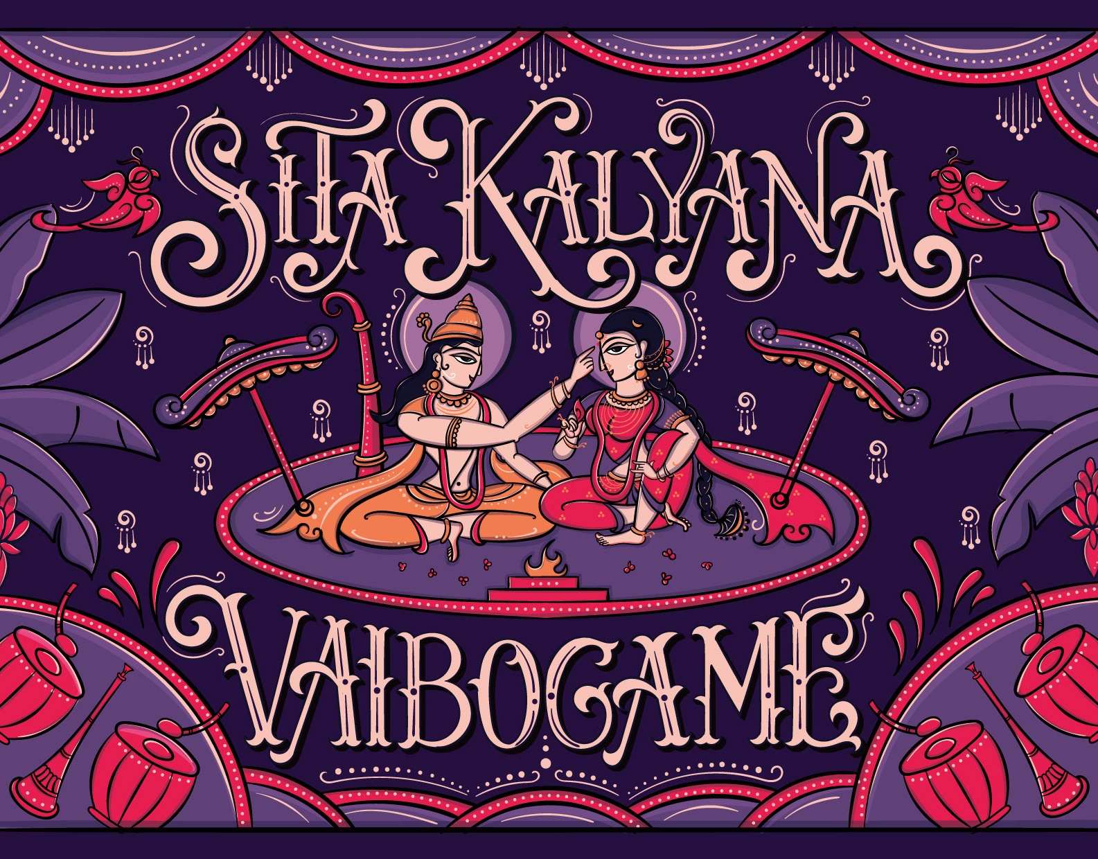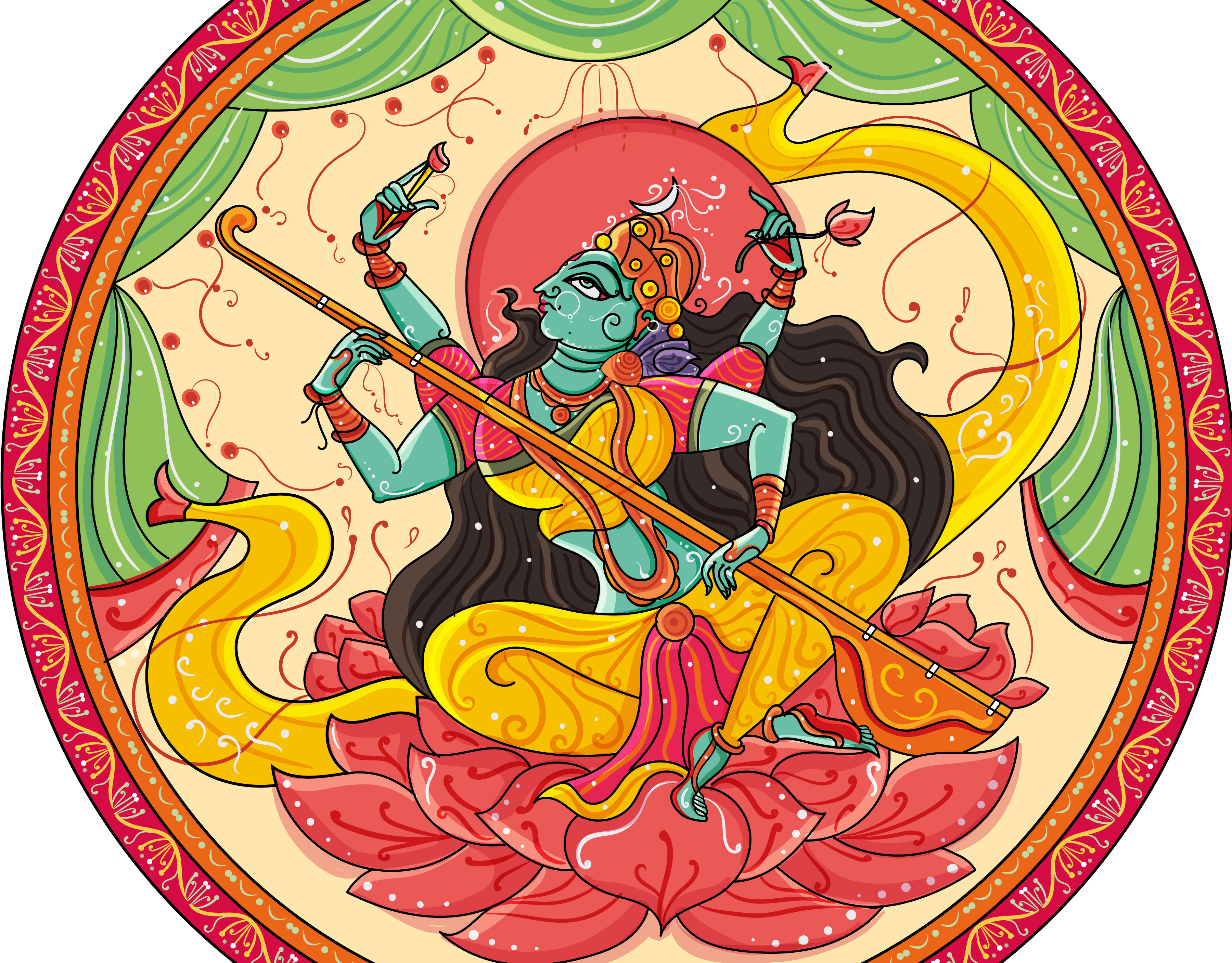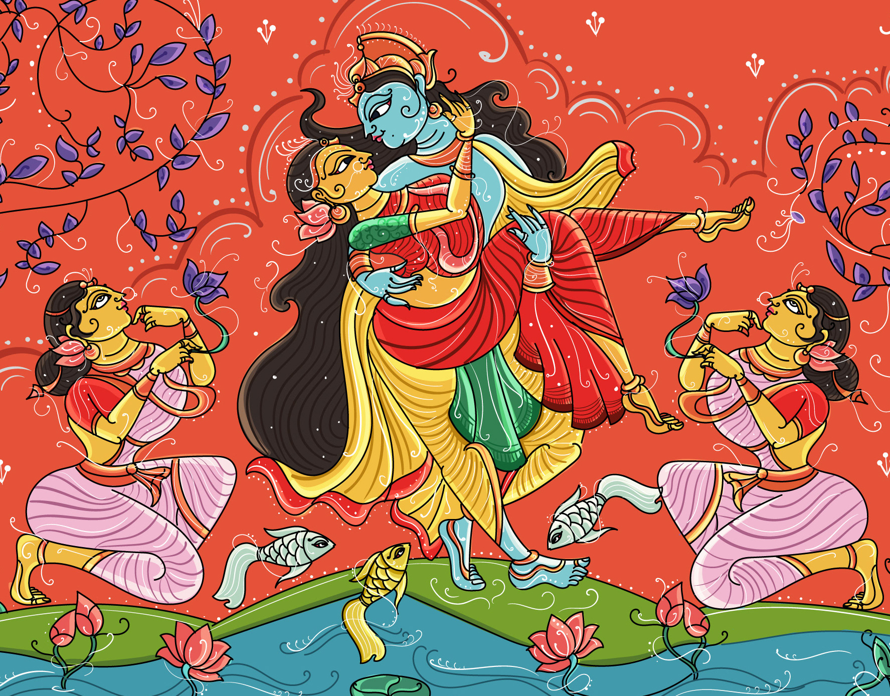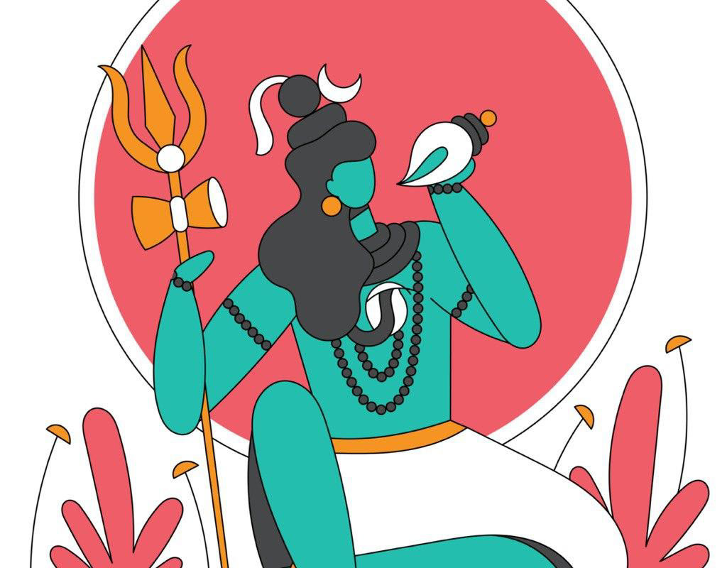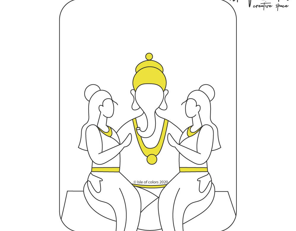 12 Hindu God Couple Illustration - Art Deco style
