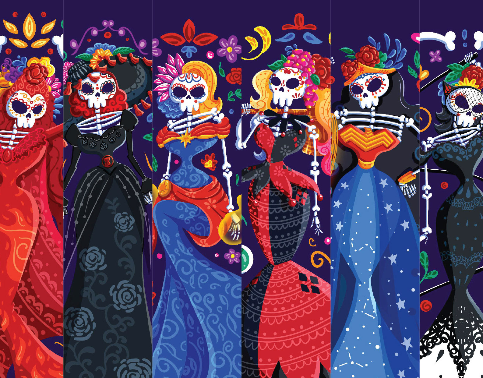 Pop Culture Heroines in Dia De Los Muertos Style