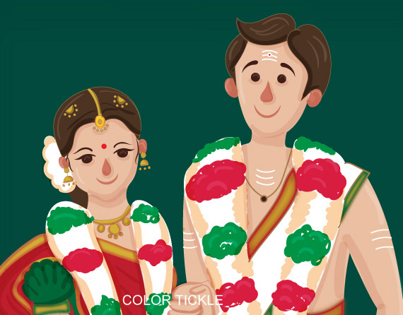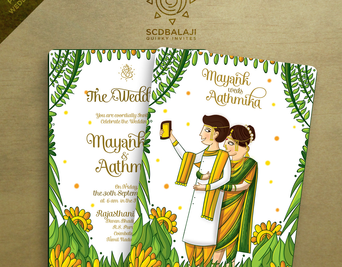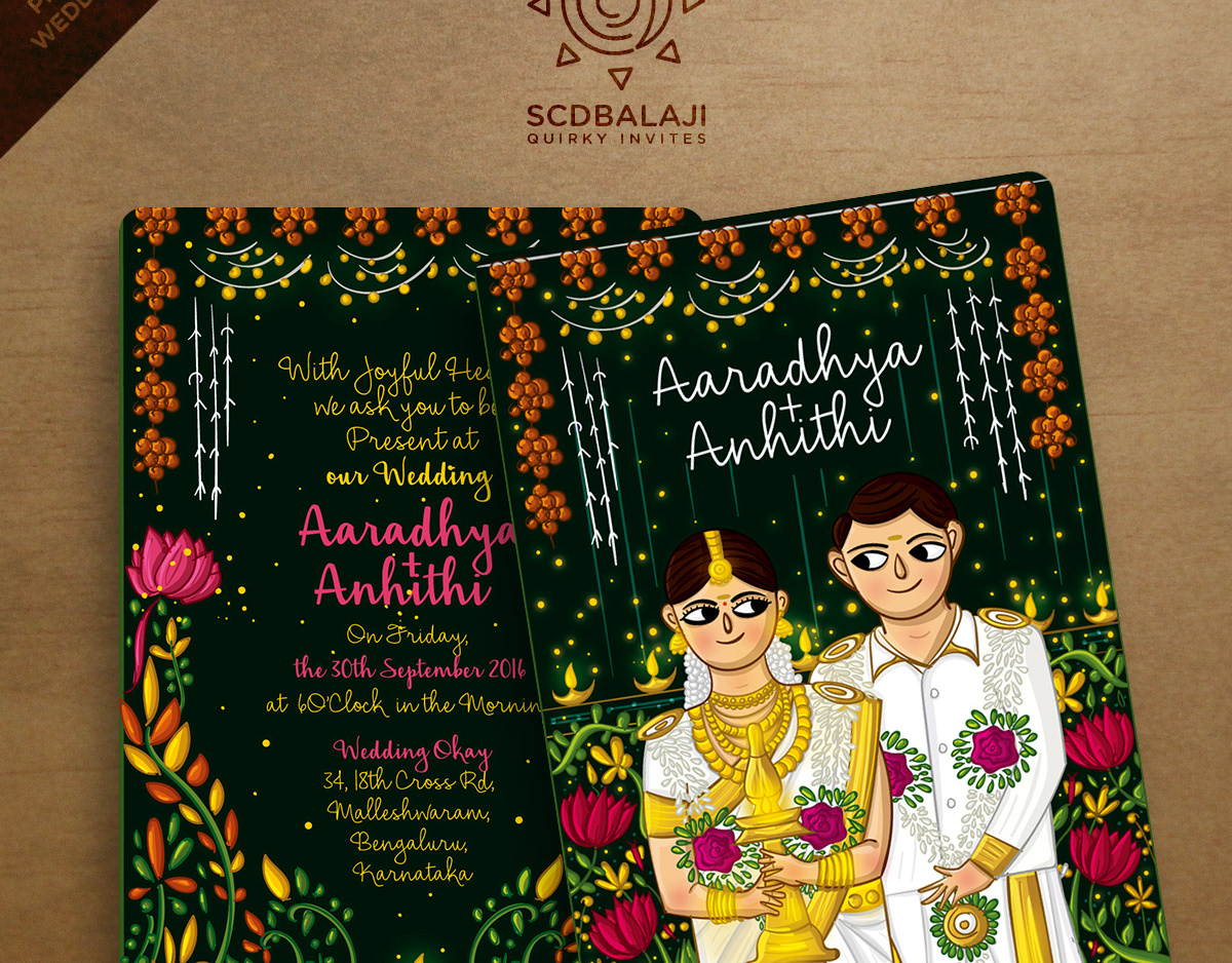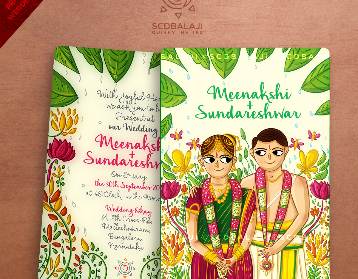 Illustrated Tambrahm - Iyer style wedding invitation
