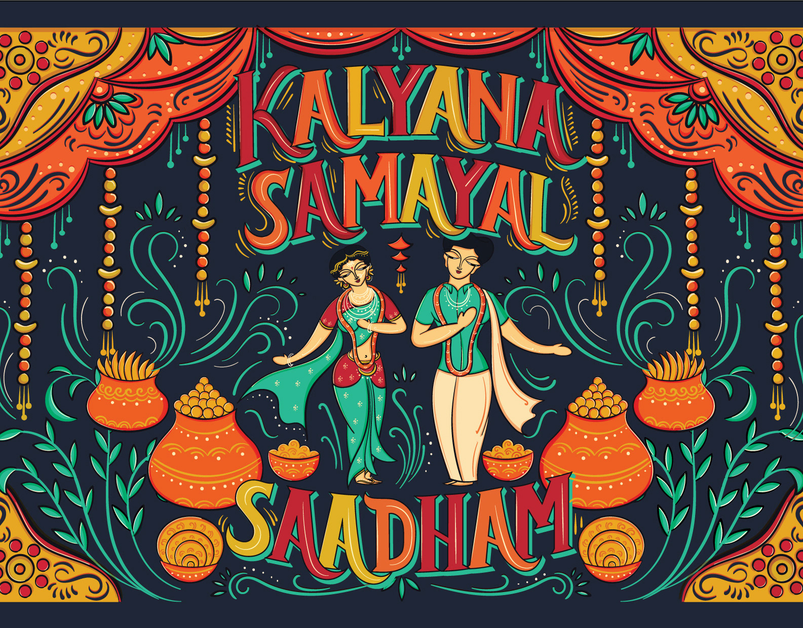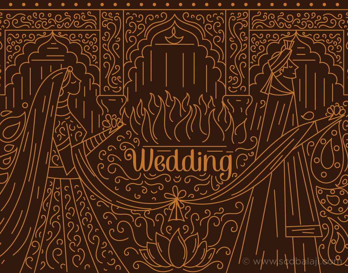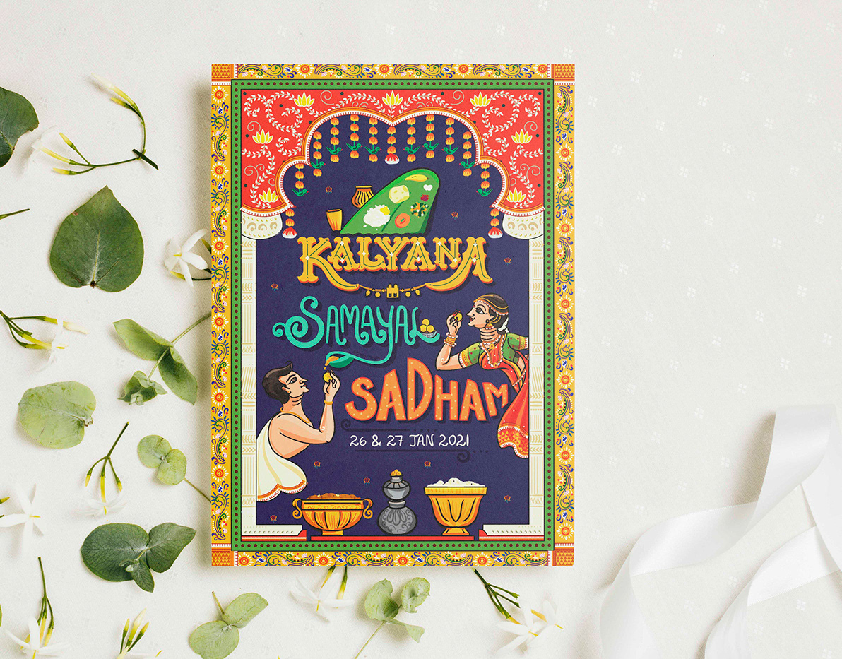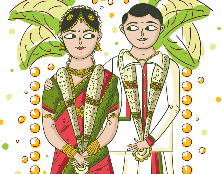 Illustrated Tambrahm - Iyer style wedding invitation