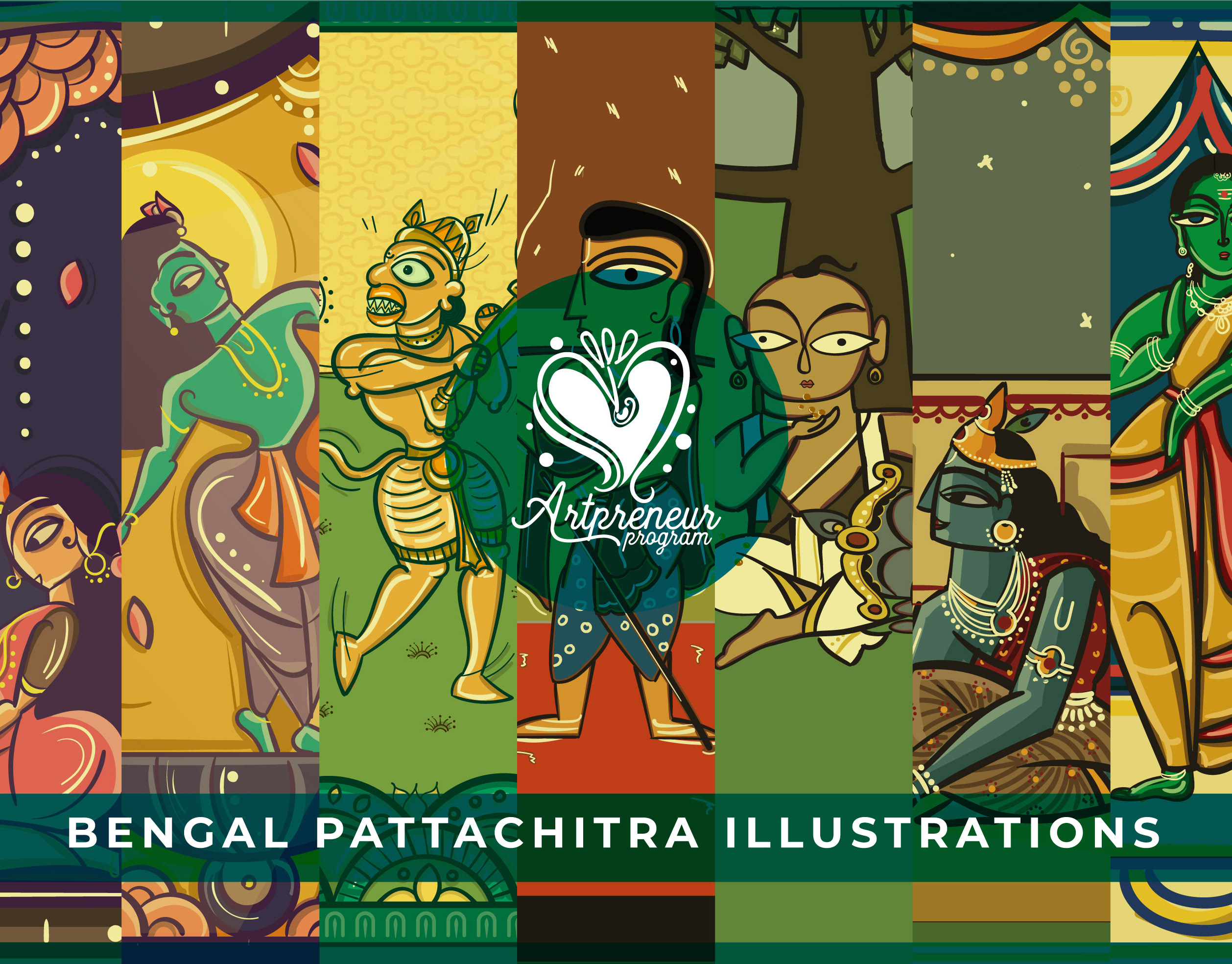 50 Contemplated Bengal Folk Art Illustrations