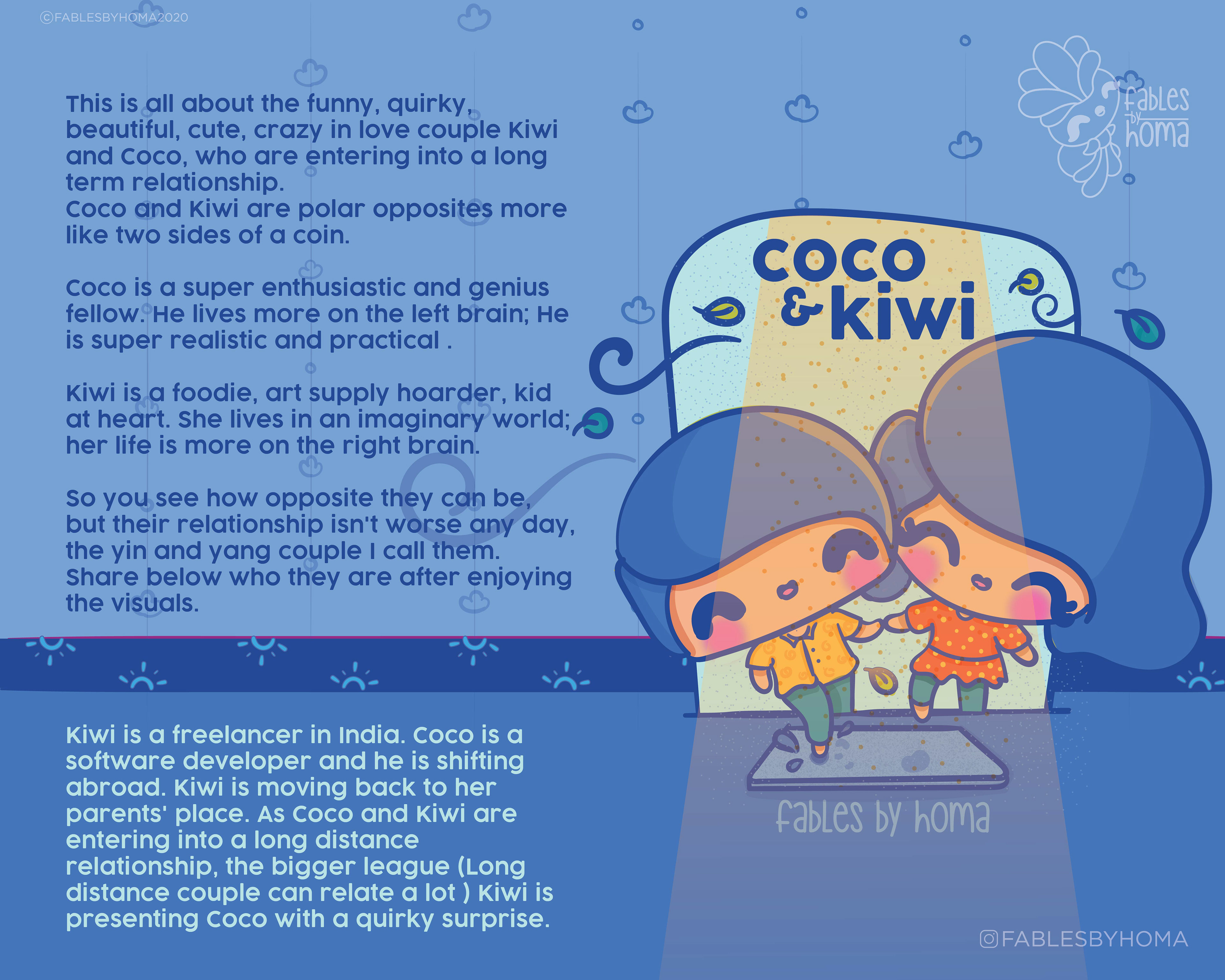 This is the story of a quirky couple, Kiwi and Coco conceptualised and illustrated in Japanese Kawaii Nouveau style done in partnership with Artpreneur Program