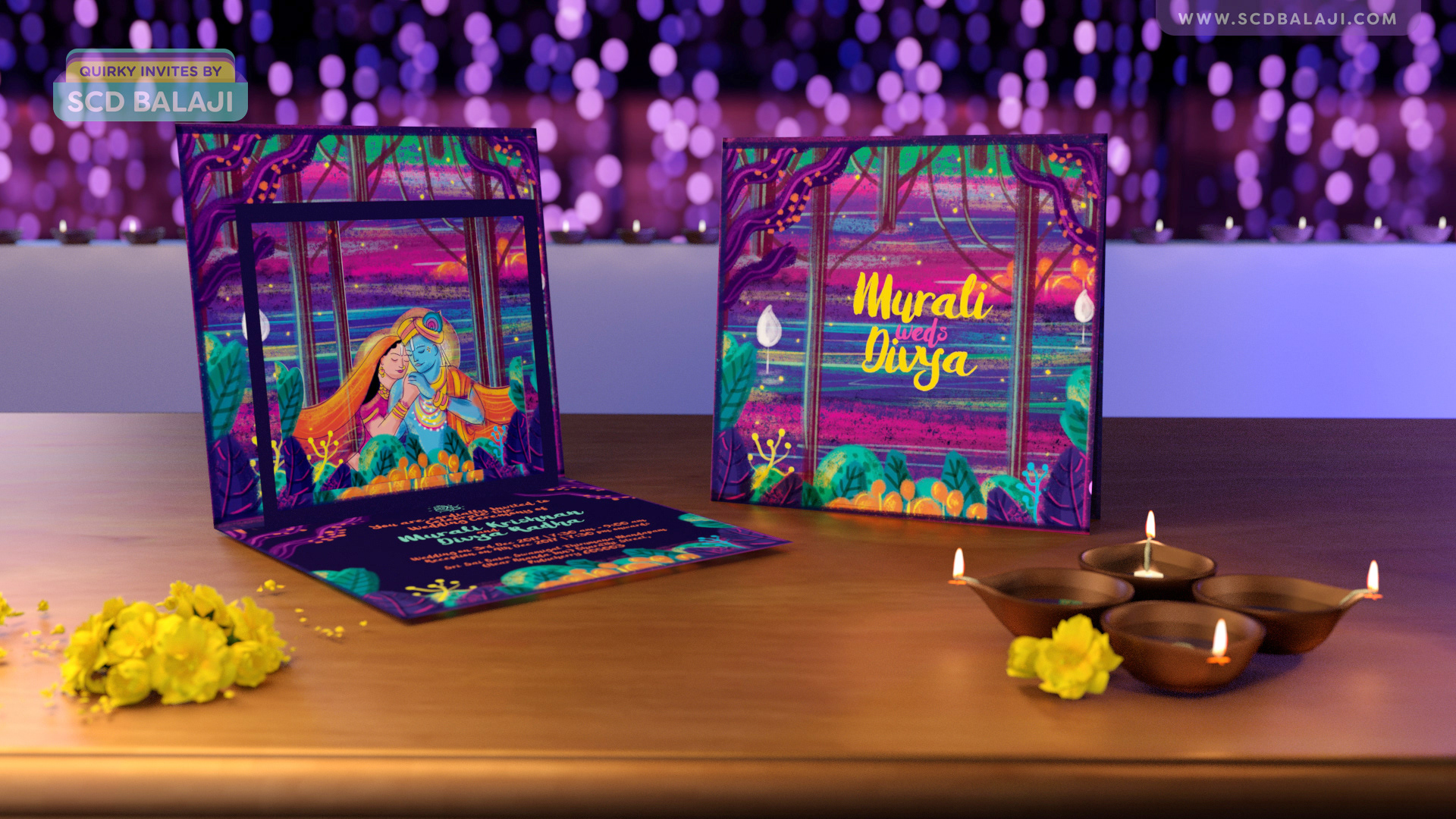Radha Krishna Pop Up Wedding Invitation Suite - Rs. 150/- Per Invitation Card (4 Pages)