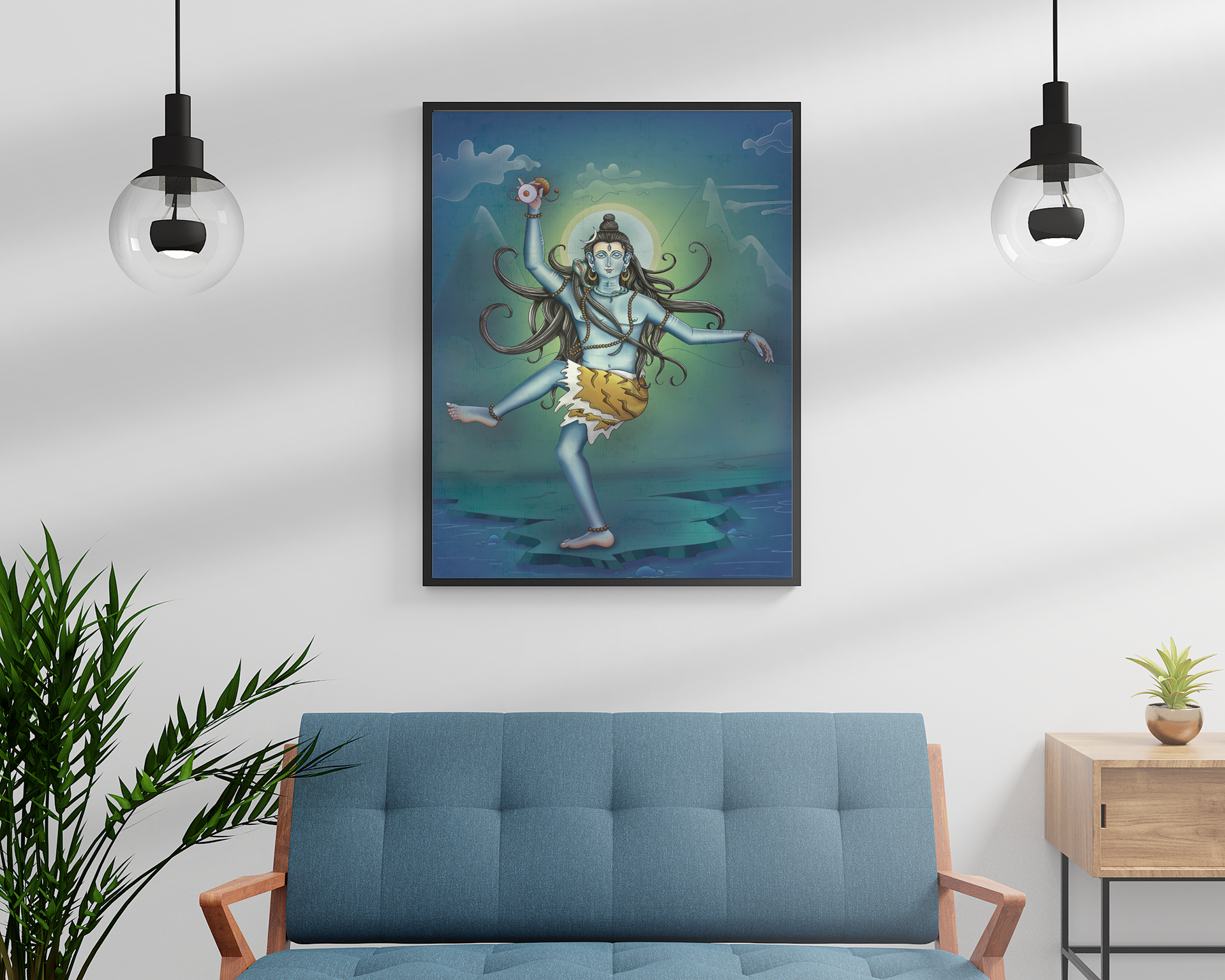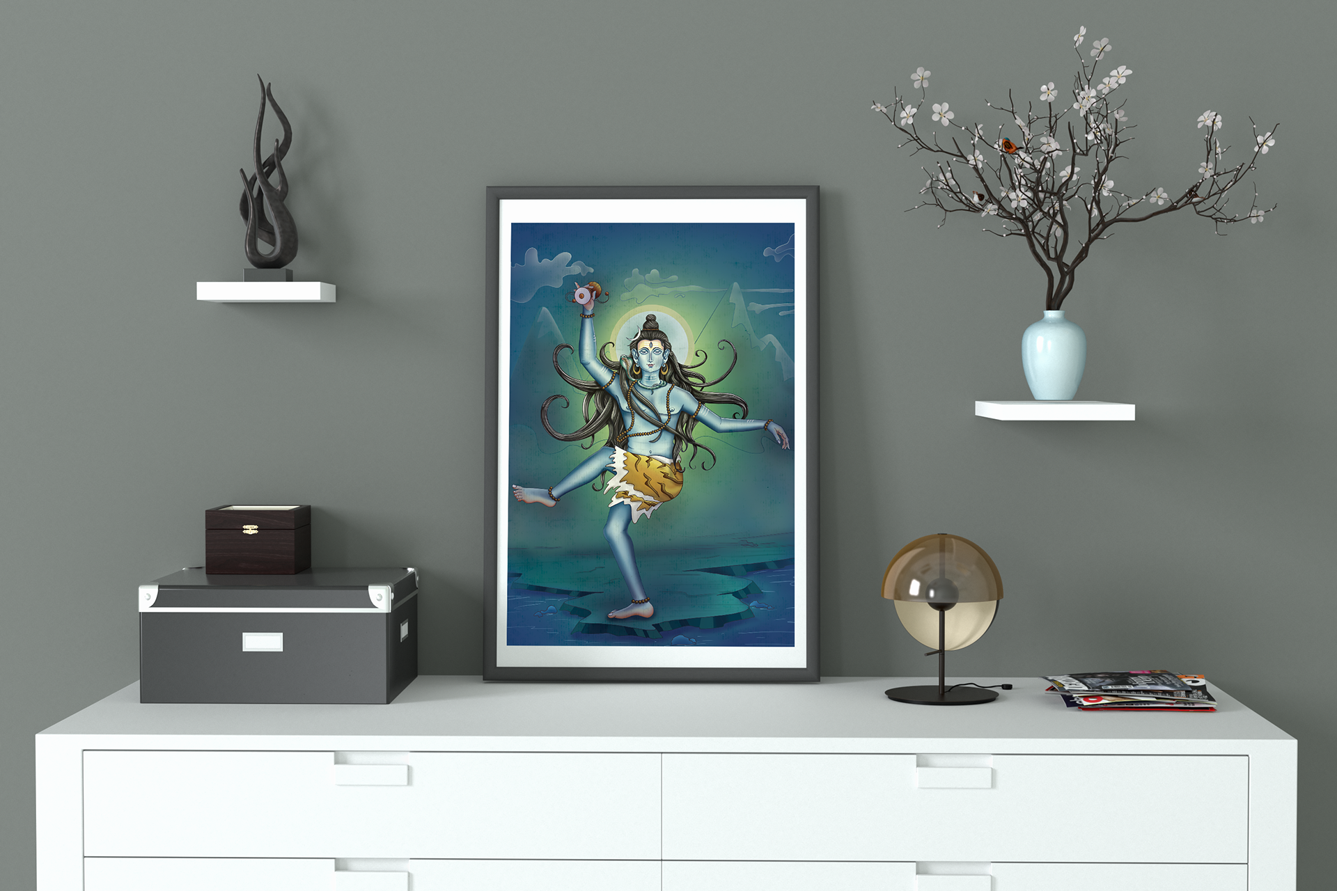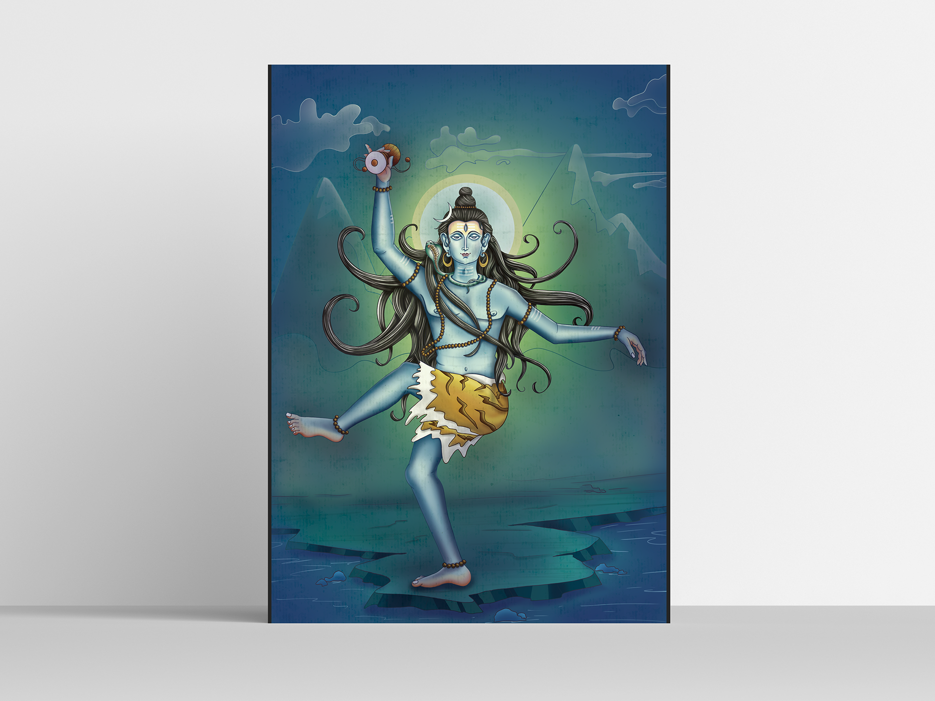 The motivation behind this project is the understand the nuances of Chitrasutra style of art form. Lord Shiva is illustrated with the grace of hair locks, large half closed eyes, thin sharp nose, small lips, tall and slender body, soft colour palette and such details specific to that art form.