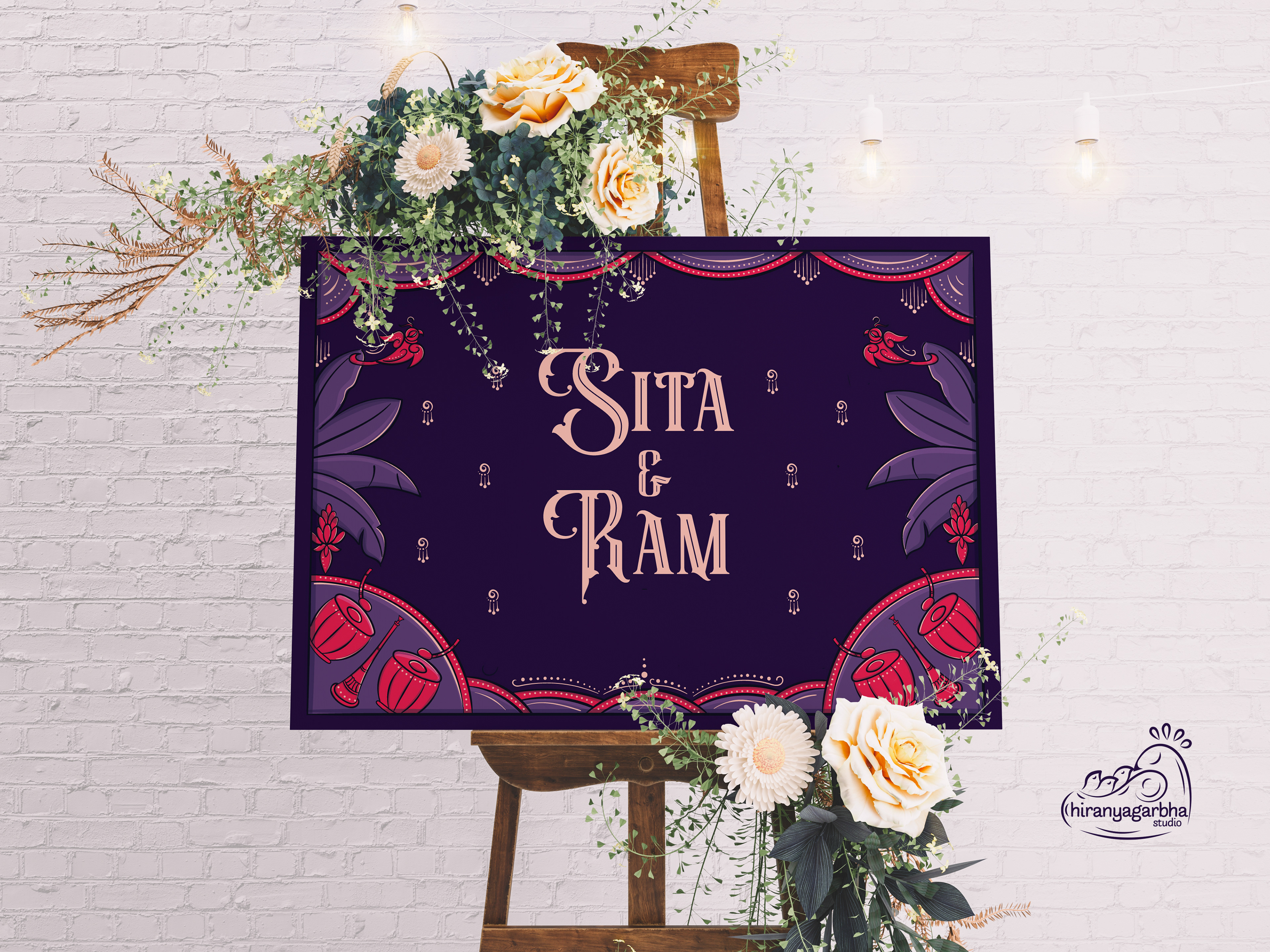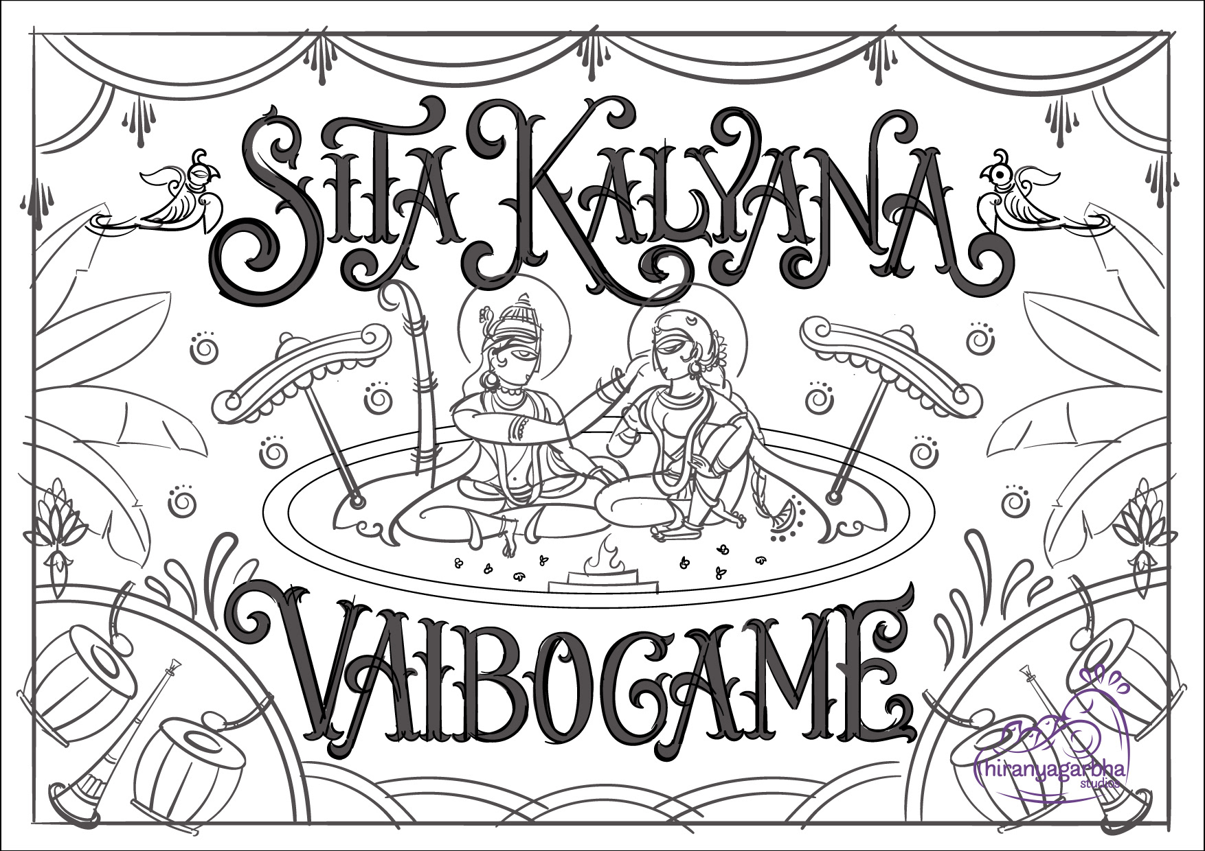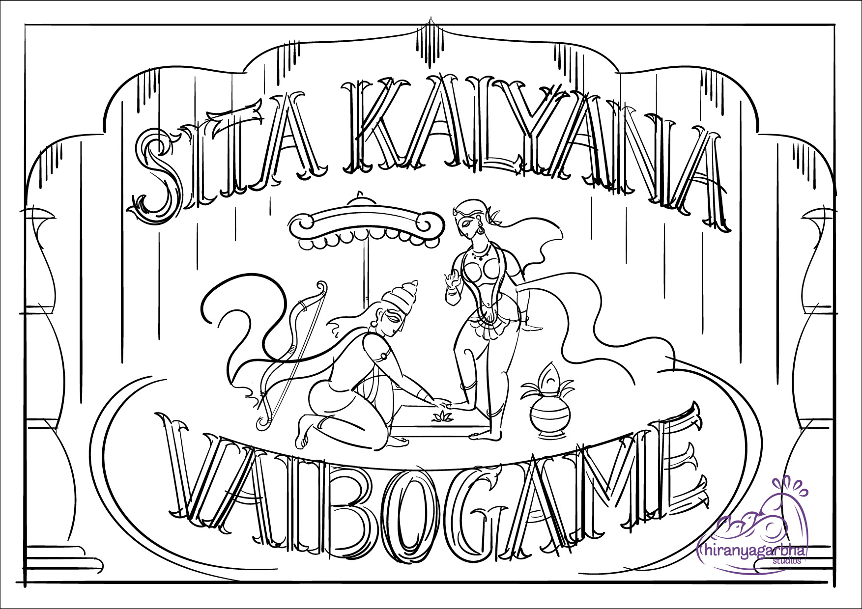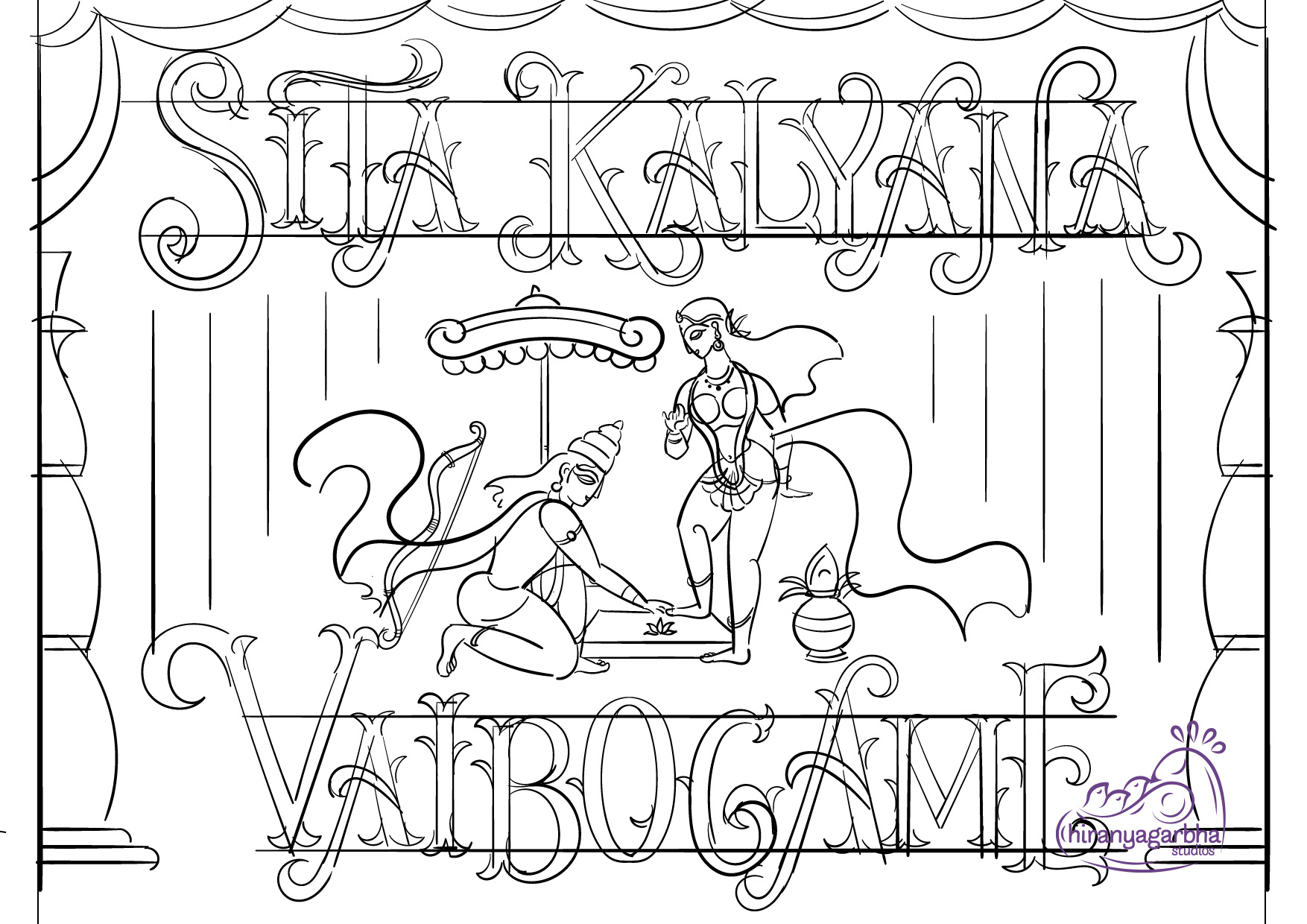 The wedding day is a special moment, a celebration of love and union. To make this day unforgettable, every detail must be perfect. A beautiful wedding invite is the perfect way to set the tone for this special occasion. The lettered quote "Sita Kalyana Vaibogame" in the contemplative Bengal Pattachitra art is a unique fusion of tradition and contemporary art. The bright colours and intricate patterns of the art form perfectly capture the spirit of the celebration. The quote means "Let the wedding of Sita be a celebration" and is a beautiful sentiment to include on the wedding invite. The blend of circus & victorian lettering style adds a touch of elegance and refinement to the invite, perfectly complementing the vibrant colors of the art.