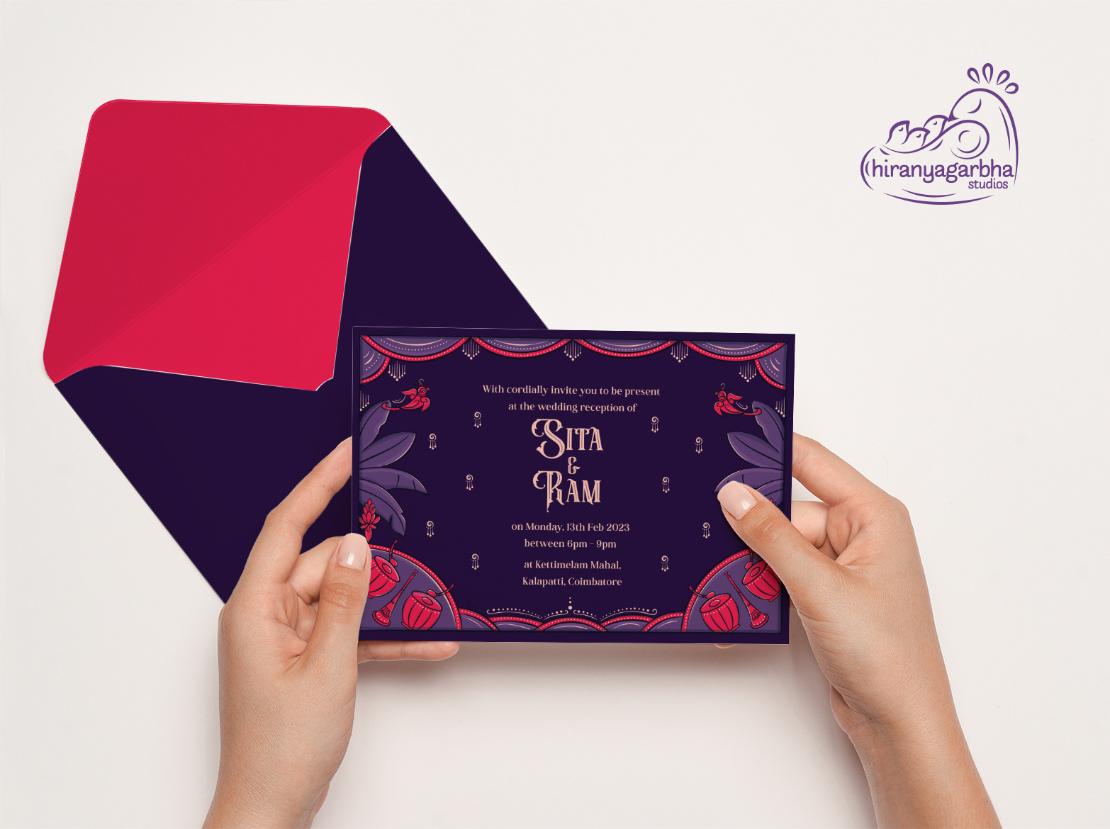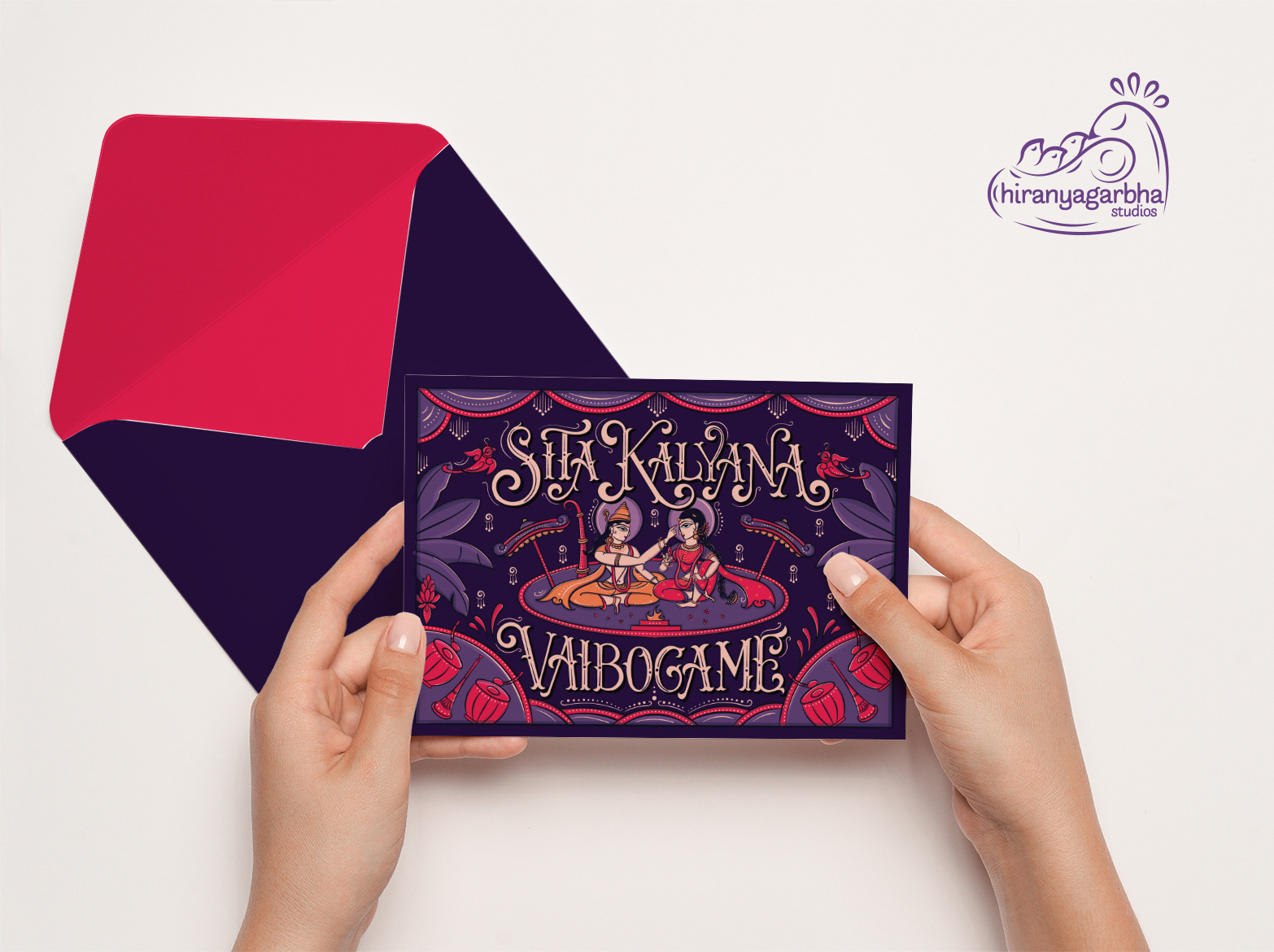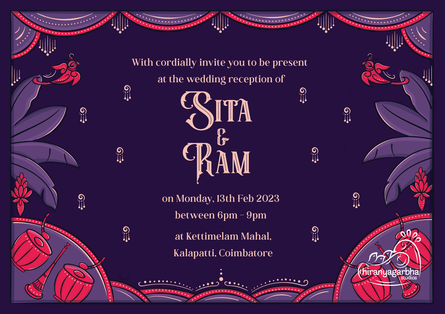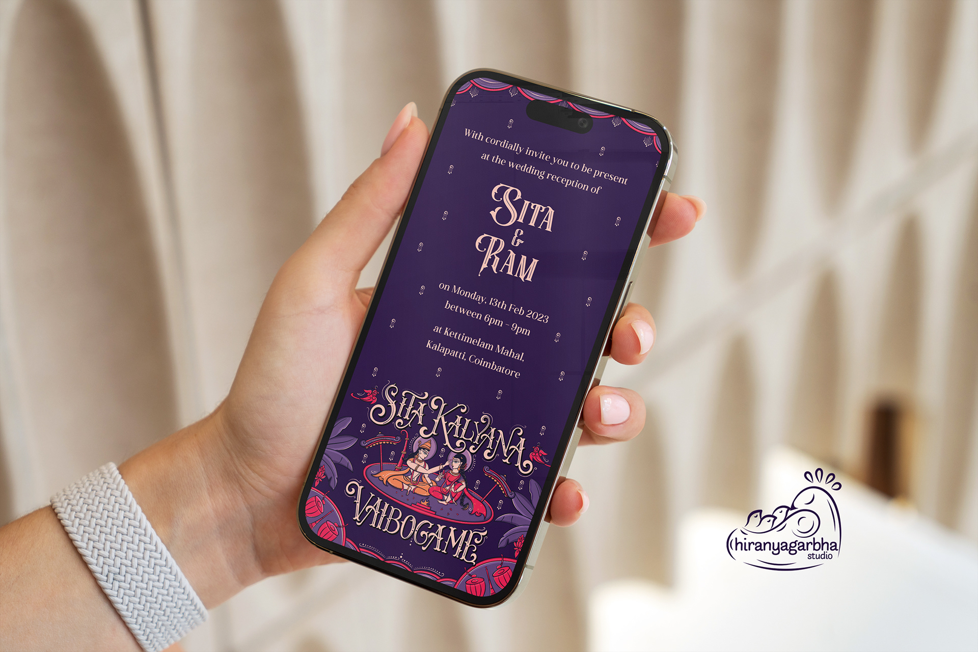 The wedding day is a special moment, a celebration of love and union. To make this day unforgettable, every detail must be perfect. A beautiful wedding invite is the perfect way to set the tone for this special occasion. The lettered quote "Sita Kalyana Vaibogame" in the contemplative Bengal Pattachitra art is a unique fusion of tradition and contemporary art. The bright colours and intricate patterns of the art form perfectly capture the spirit of the celebration. The quote means "Let the wedding of Sita be a celebration" and is a beautiful sentiment to include on the wedding invite. The blend of circus & victorian lettering style adds a touch of elegance and refinement to the invite, perfectly complementing the vibrant colors of the art.