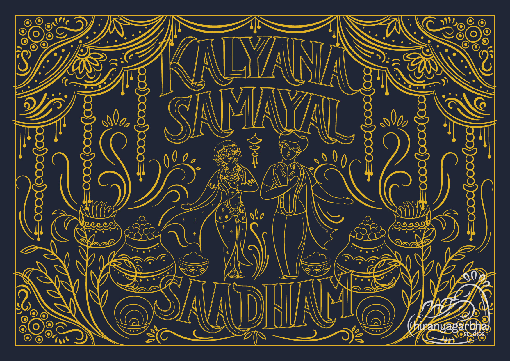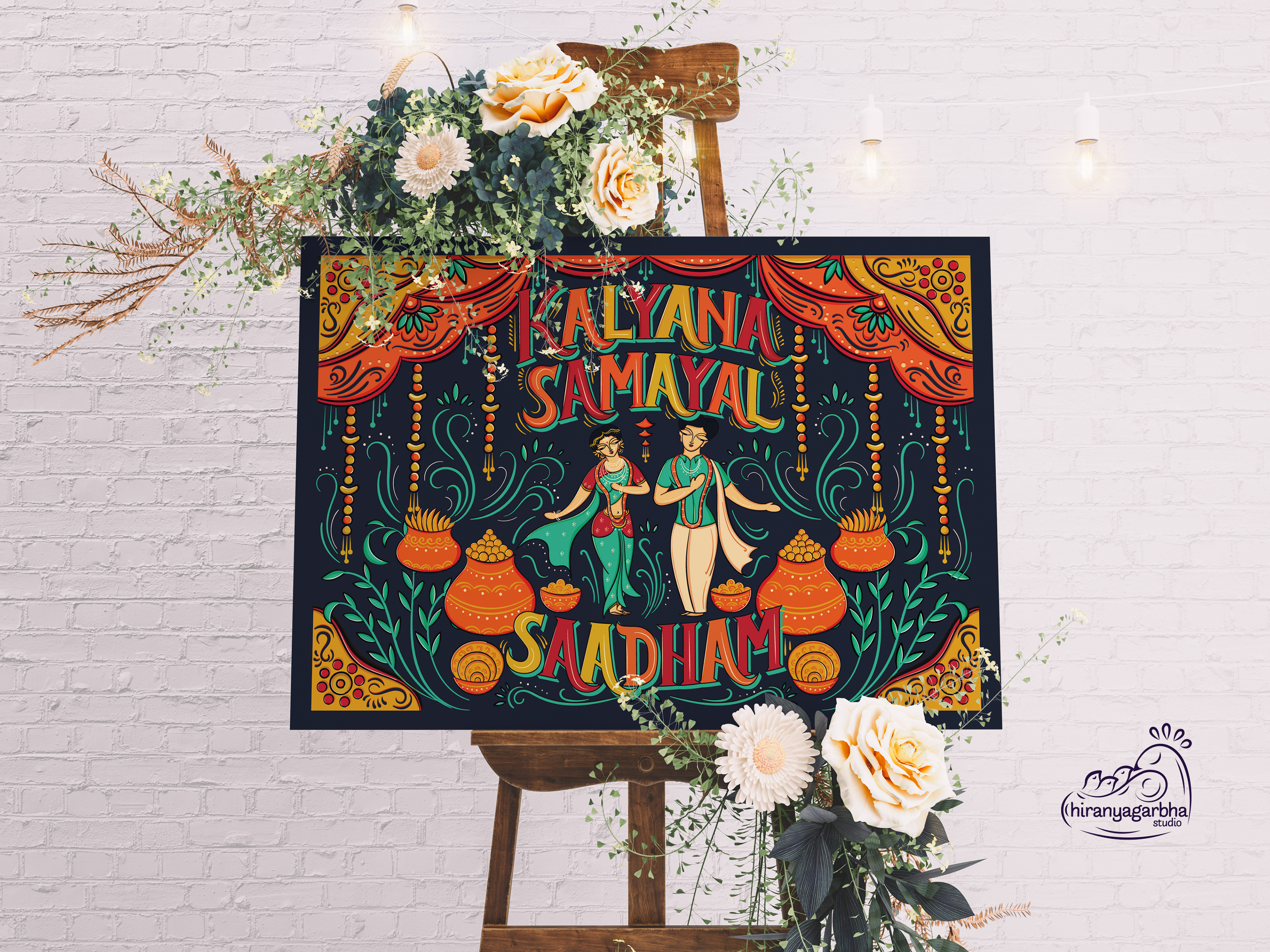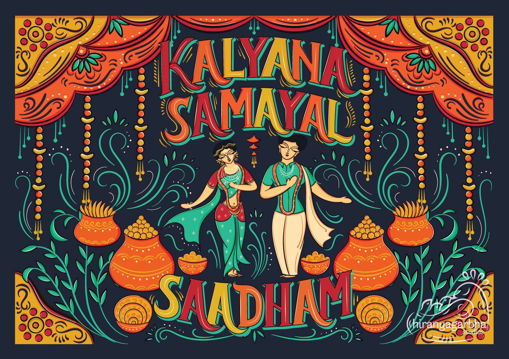 "Kalyana Samayal Saadham" is a traditional South Indian wedding feast that celebrates the union of two hearts and two families. And what better way to invite your loved ones to this auspicious occasion than with an illustrated lettering wedding invite that beautifully captures the essence of this delightful feast?