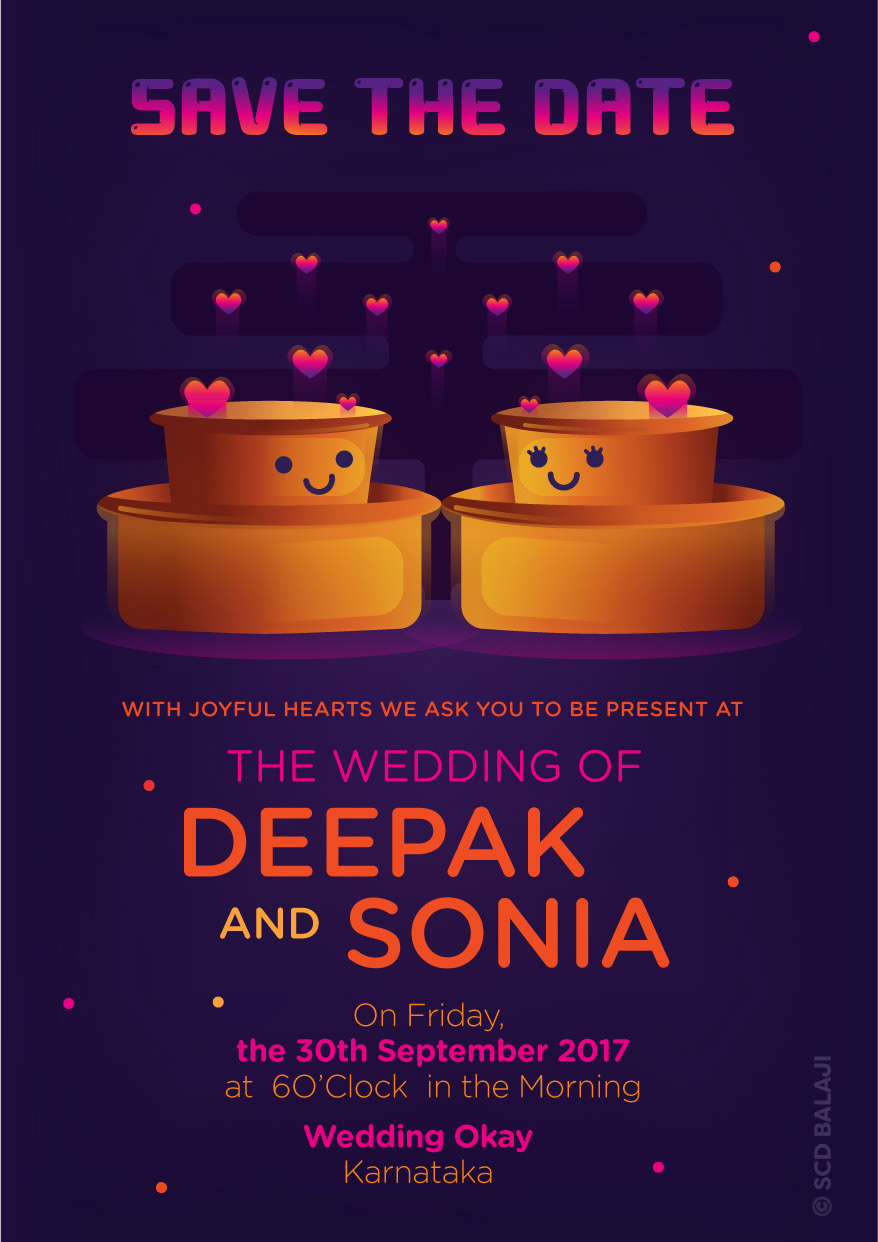 When someone loves you more than he loves his filter coffee, marry him “ For all the Tamil Brahmins, their first love will always be filter coffee. As we take a small sip from the copper tumbler, everything else on your mind stays away and the coffee starts talking to your inner soul. When you love someone more than you love your filter coffee, you have found your soulmate. It’s time to let your folks know you are getting married. This unique Tambrahm wedding - save the date card has cute illustration of two filter coffees in love and it is sure to put a smile on the viewer’s face. Your Tambrahm family and friends will never forget a wedding invite that had filter coffee on it and that makes this the perfect “ Save the Date “ card.