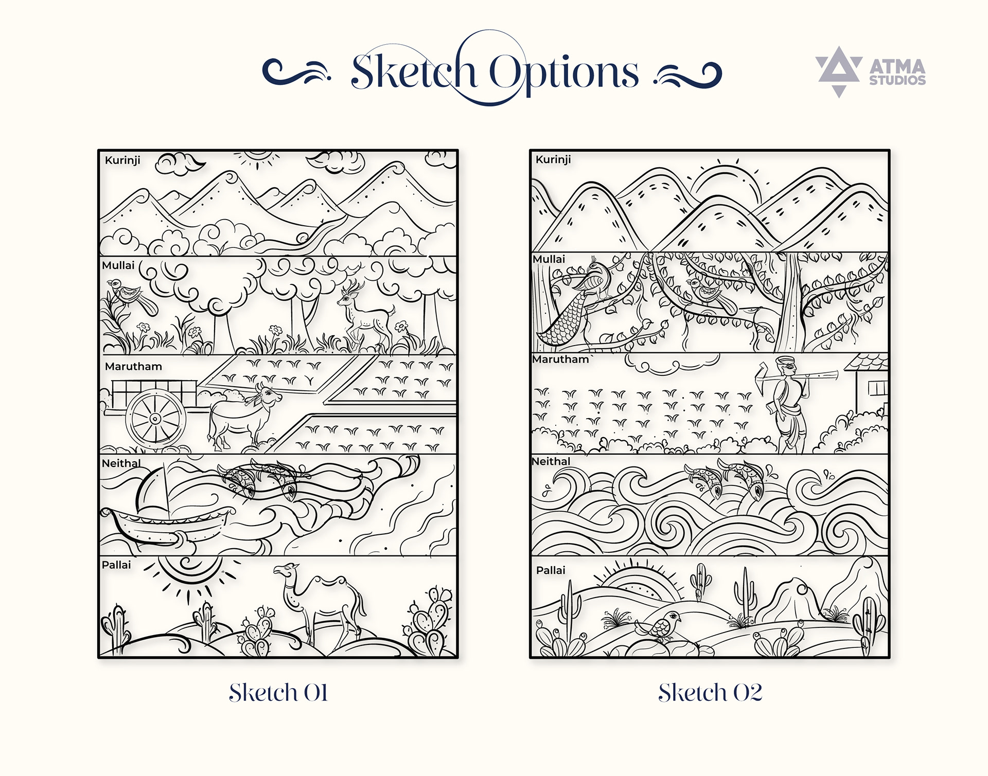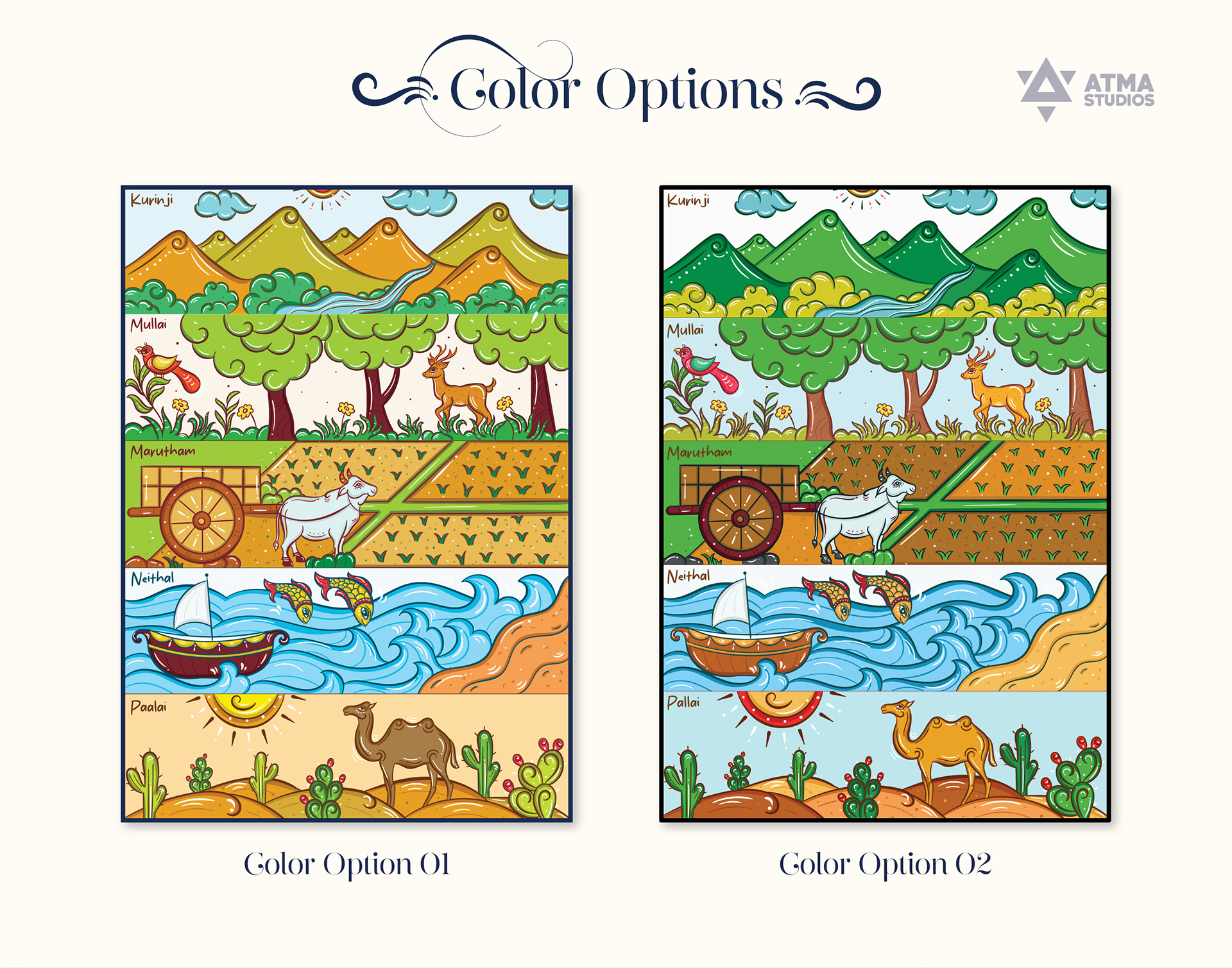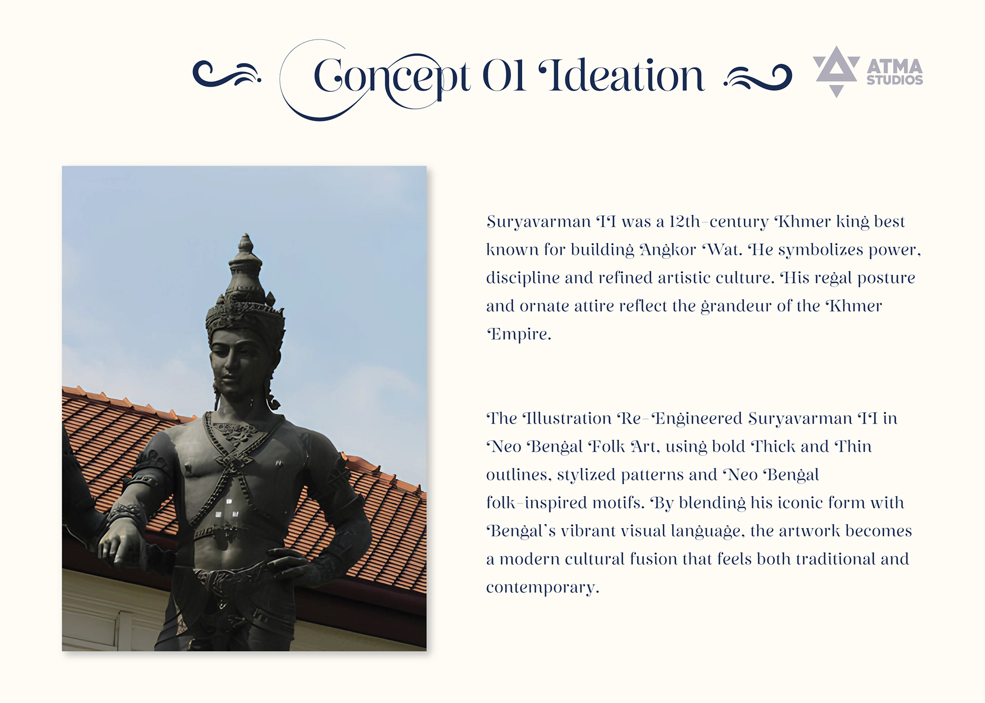 A vibrant fusion of culture and creativity, this project reimagines Indian heritage in a fun, child-friendly style. Featuring a Neo Bengal Folk Art version of King Suryavarman II and a colourful illustration of the Five Tamil Landscapes, the designs bring tradition to life as expressive, wearable art. From sketches to final tees, each piece celebrates storytelling, culture, and modern kids’ fashion.