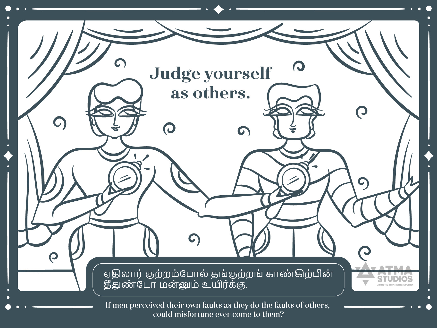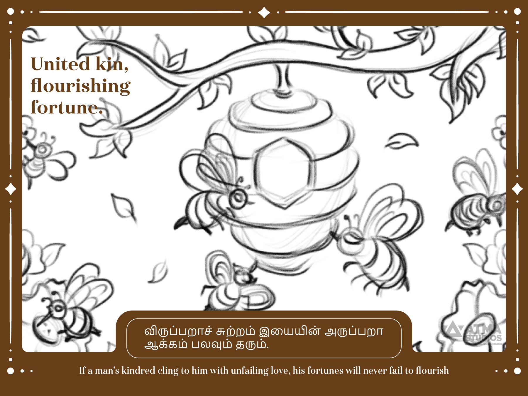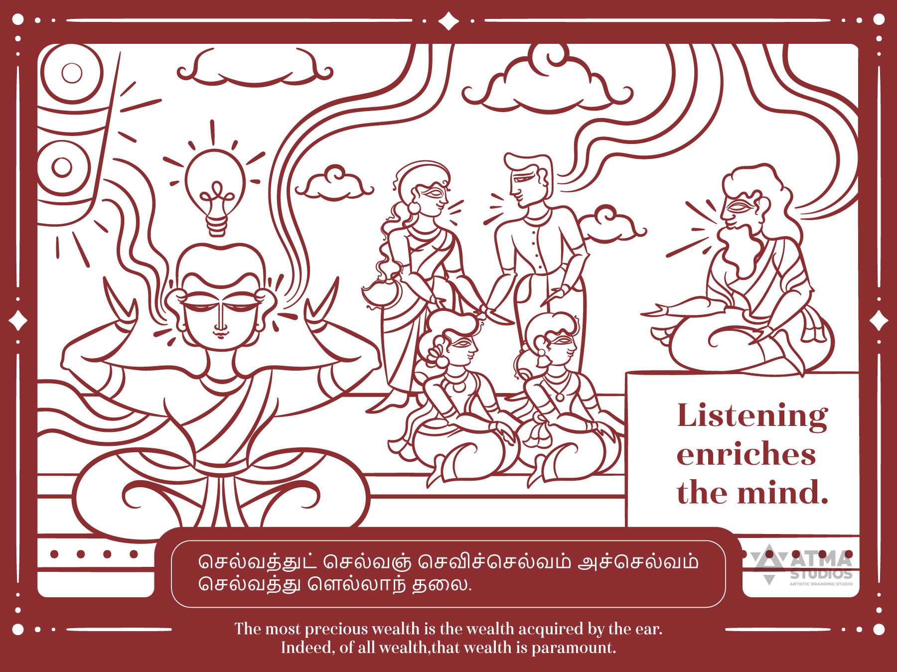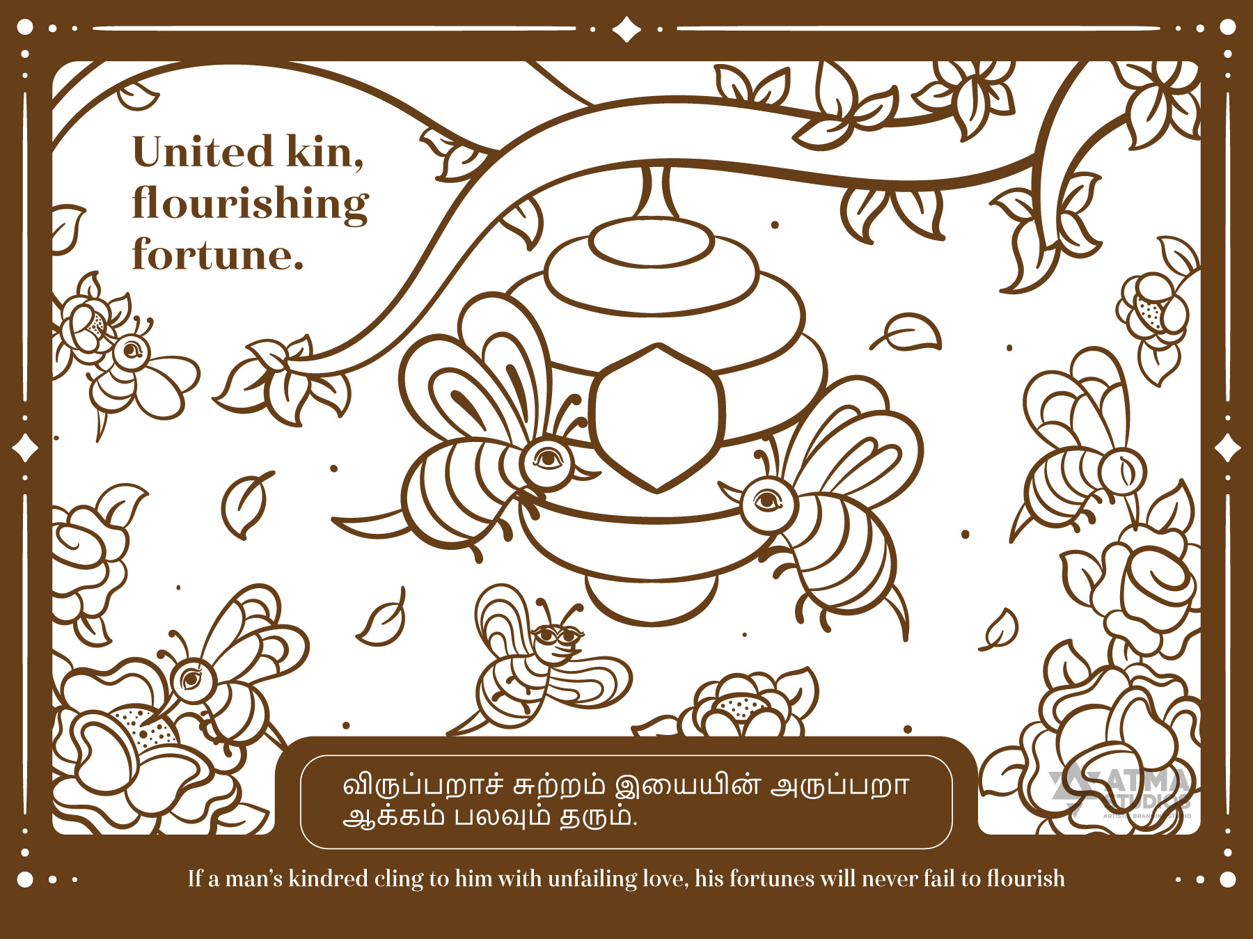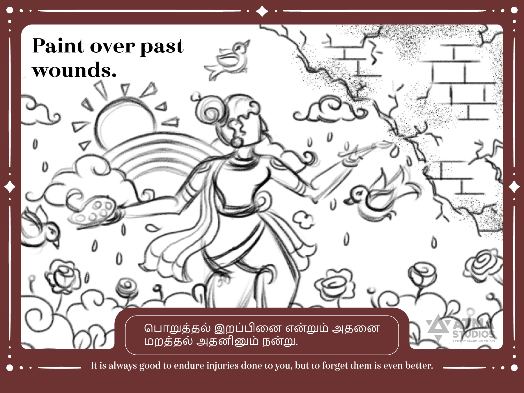 JC Residency’s founder, an ardent admirer of Neo Bengal Folk Art, envisioned a unique and culturally resonant 2025 calendar featuring 12 bespoke illustrations inspired by Thirukkural. Given the ambitious scope and timeline, SCD Balaji proposed an exceptional alternative: entrusting the project to an equally proficient artist and Artpreneur Online Program alumnus, Vinodhini N Durai, founder of Pastelwand Studios. Vinodhini’s expertise in Neo Bengal Folk Art, coupled with her professional finesse and dedication, made her the perfect candidate to bring this vision to life. Her involvement ensured the project’s seamless execution, maintaining Atma Studios’ standard of excellence while delivering a fresh and inspired interpretation. • Creative Direction: SCD Balaji, Atma Studios • Illustrations: Vinodhini N Durai, Pastelwand Studios