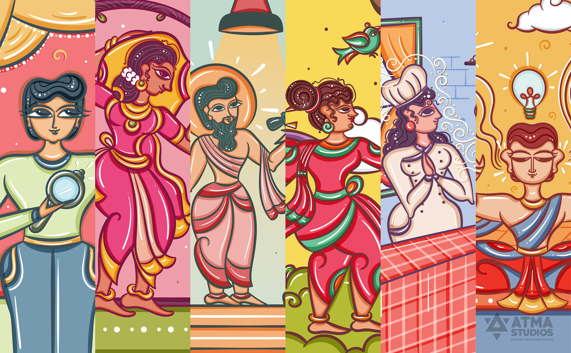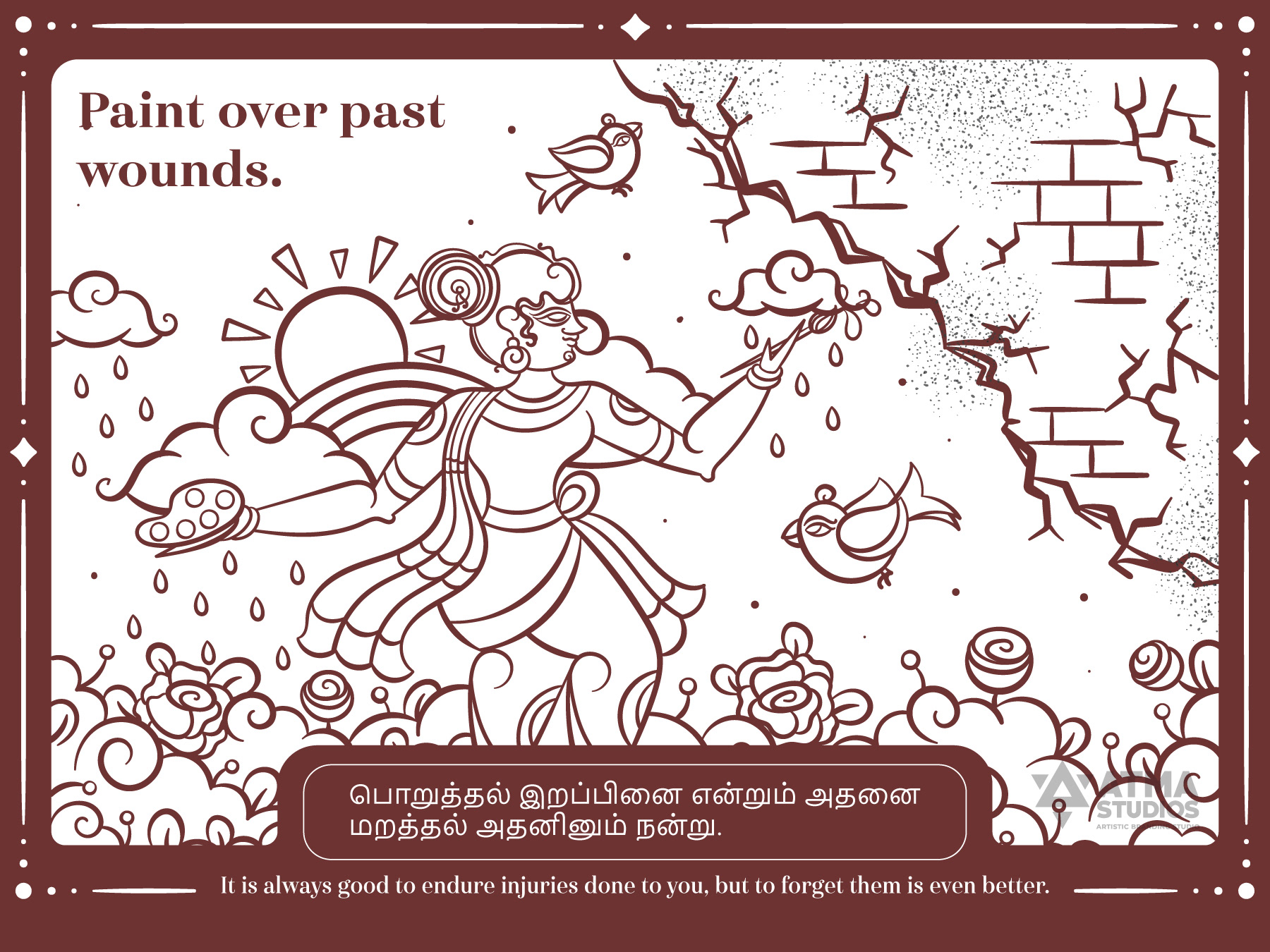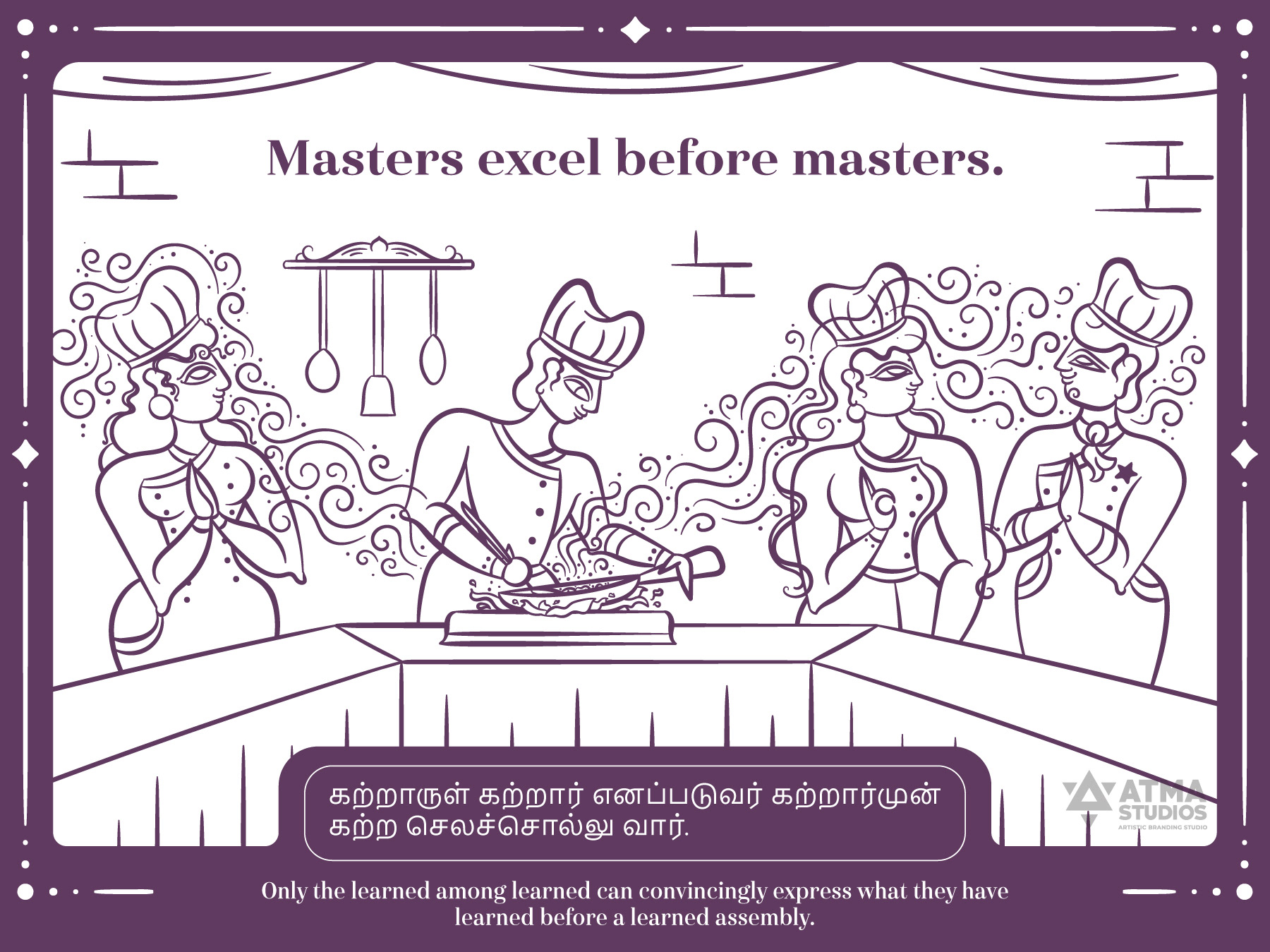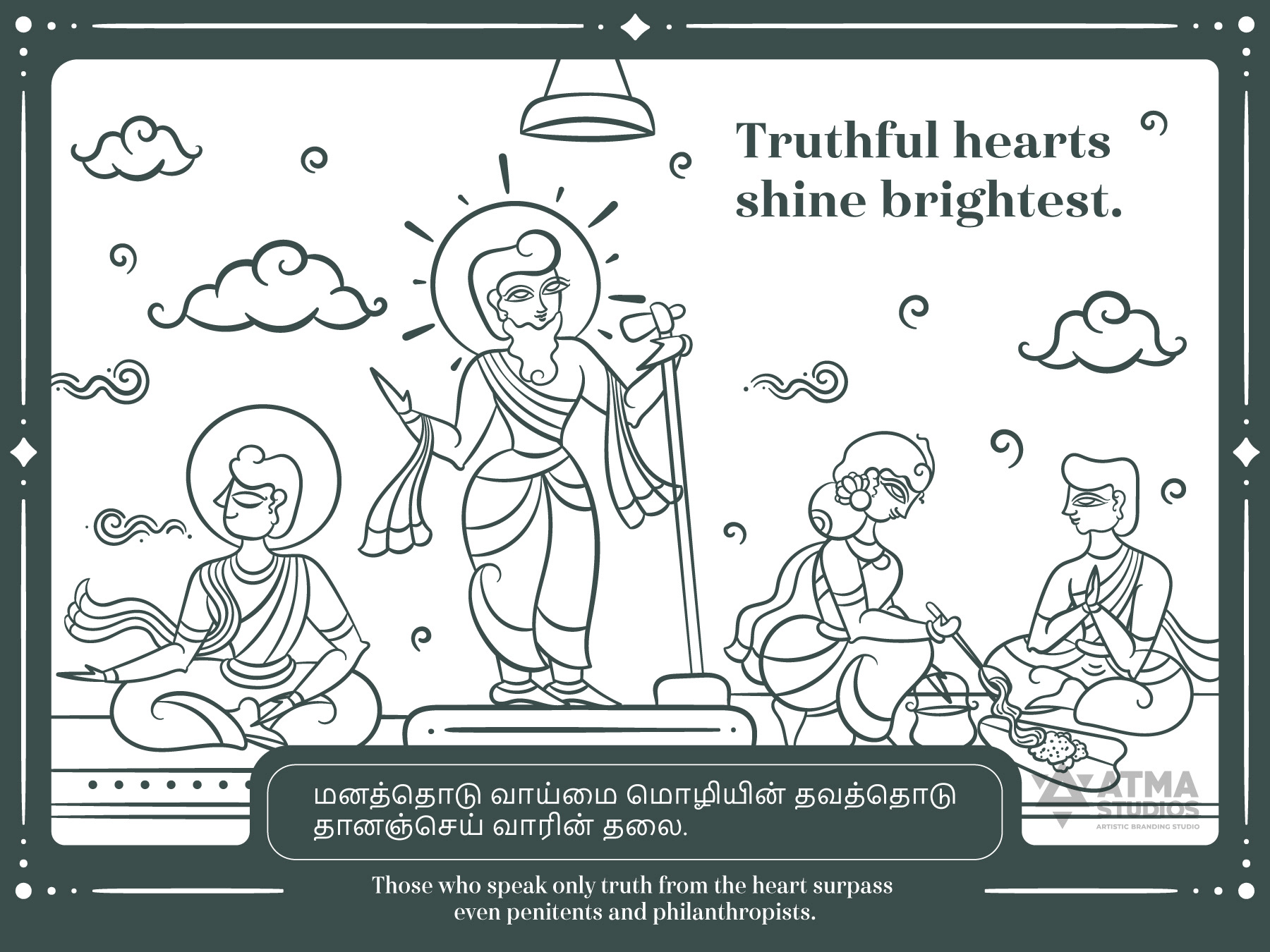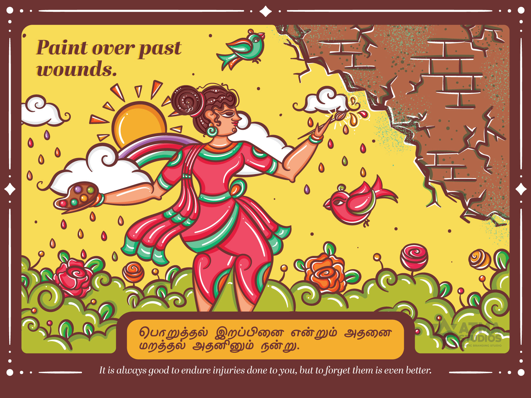 JC Residency’s founder, an ardent admirer of Neo Bengal Folk Art, envisioned a unique and culturally resonant 2025 calendar featuring 12 bespoke illustrations inspired by Thirukkural. Given the ambitious scope and timeline, SCD Balaji proposed an exceptional alternative: entrusting the project to an equally proficient artist and Artpreneur Online Program alumnus, Vinodhini N Durai, founder of Pastelwand Studios. Vinodhini’s expertise in Neo Bengal Folk Art, coupled with her professional finesse and dedication, made her the perfect candidate to bring this vision to life. Her involvement ensured the project’s seamless execution, maintaining Atma Studios’ standard of excellence while delivering a fresh and inspired interpretation. • Creative Direction: SCD Balaji, Atma Studios • Illustrations: Vinodhini N Durai, Pastelwand Studios