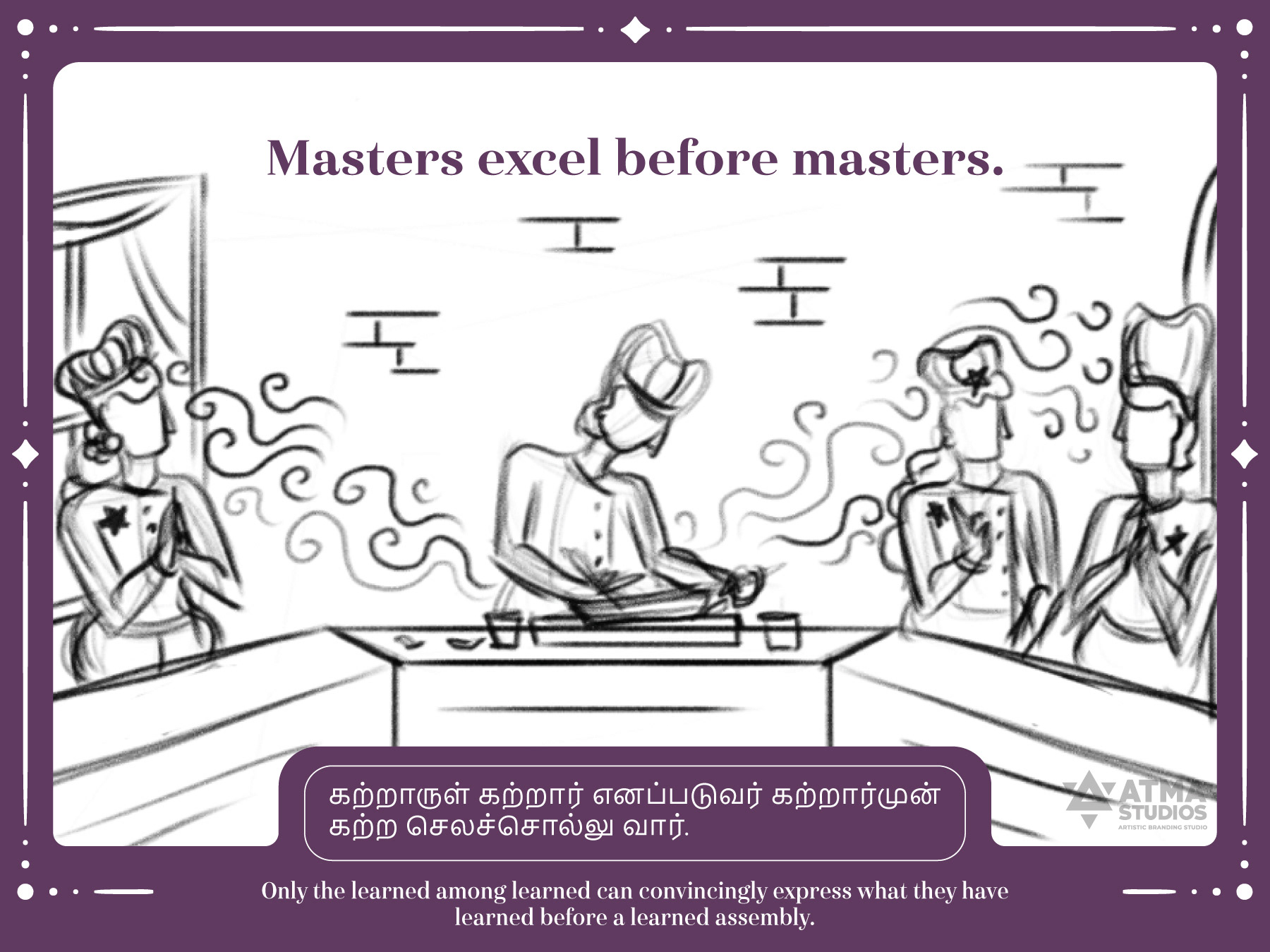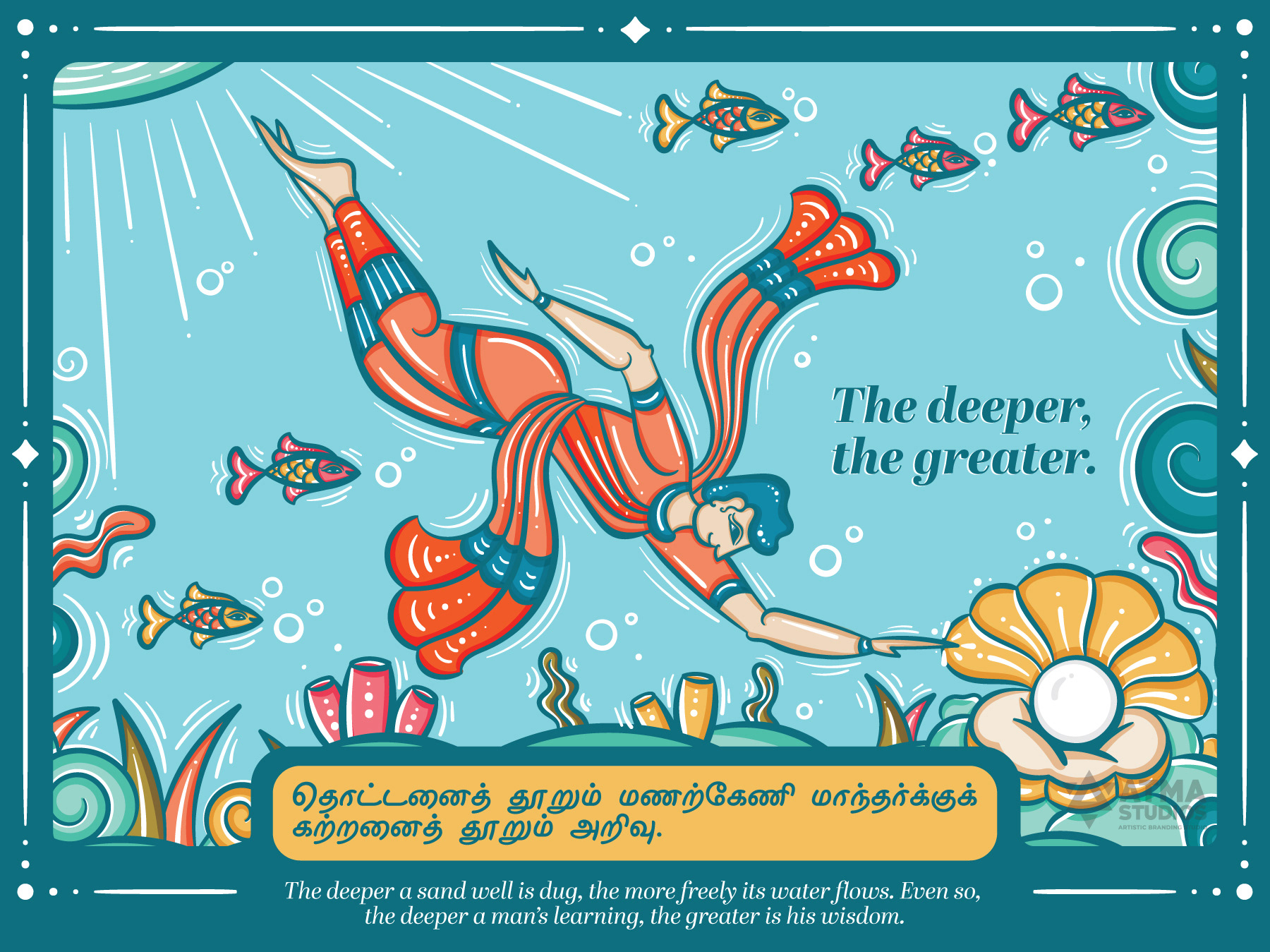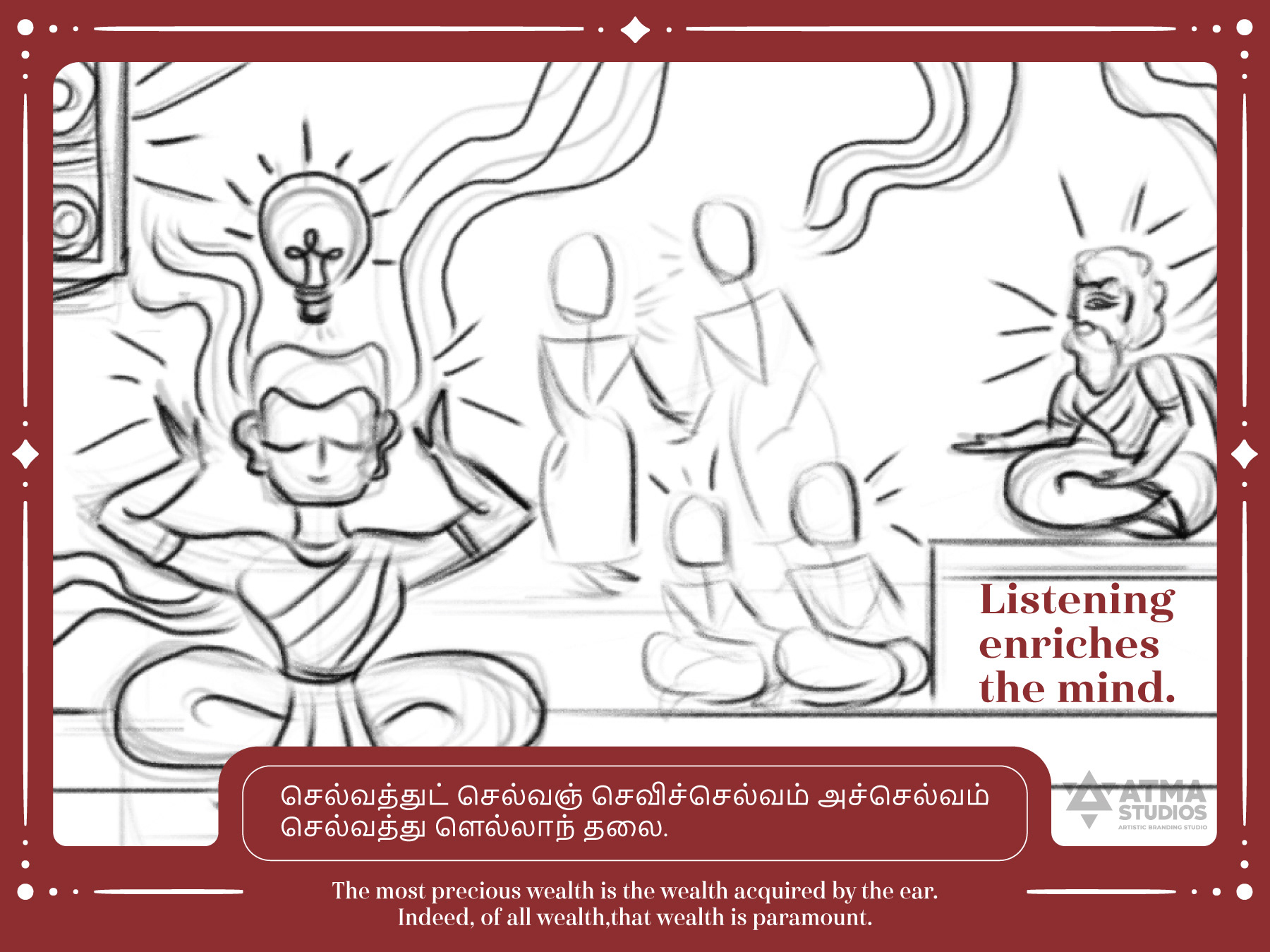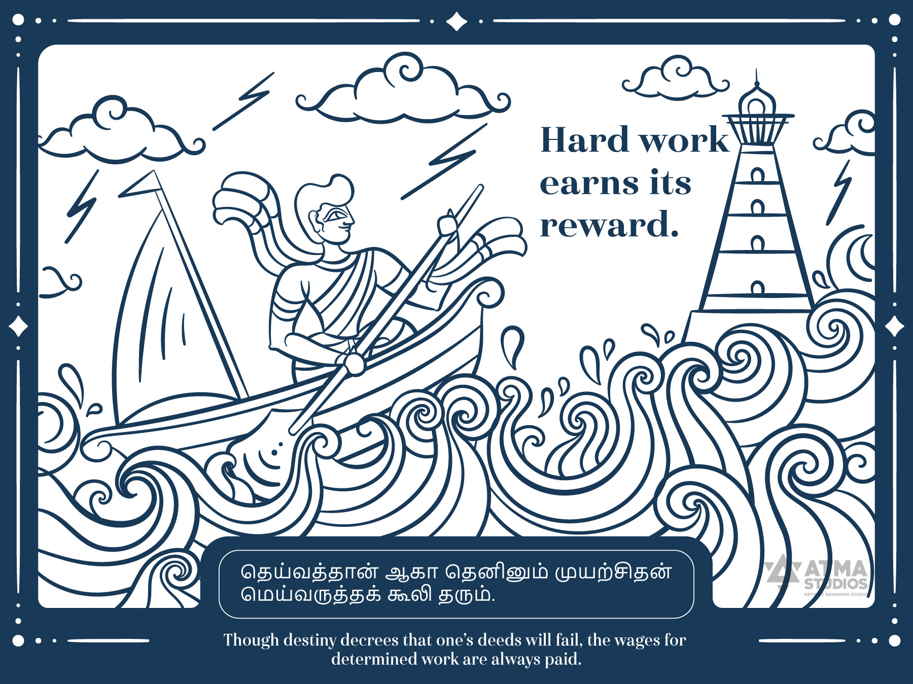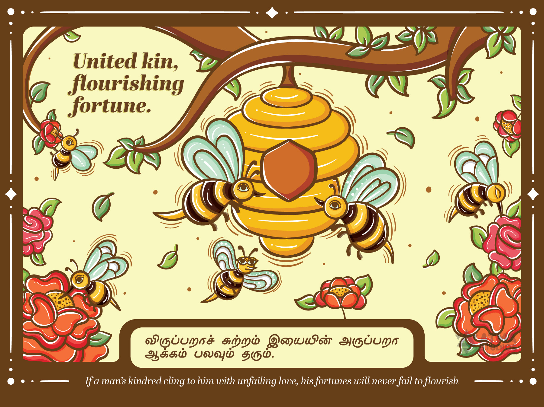 JC Residency’s founder, an ardent admirer of Neo Bengal Folk Art, envisioned a unique and culturally resonant 2025 calendar featuring 12 bespoke illustrations inspired by Thirukkural. Given the ambitious scope and timeline, SCD Balaji proposed an exceptional alternative: entrusting the project to an equally proficient artist and Artpreneur Online Program alumnus, Vinodhini N Durai, founder of Pastelwand Studios. Vinodhini’s expertise in Neo Bengal Folk Art, coupled with her professional finesse and dedication, made her the perfect candidate to bring this vision to life. Her involvement ensured the project’s seamless execution, maintaining Atma Studios’ standard of excellence while delivering a fresh and inspired interpretation. • Creative Direction: SCD Balaji, Atma Studios • Illustrations: Vinodhini N Durai, Pastelwand Studios