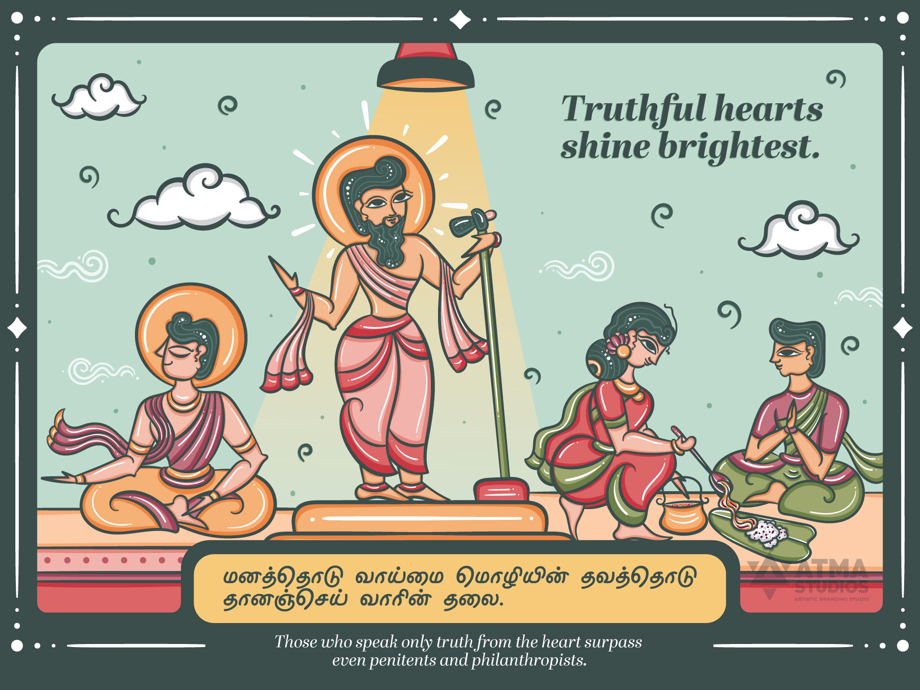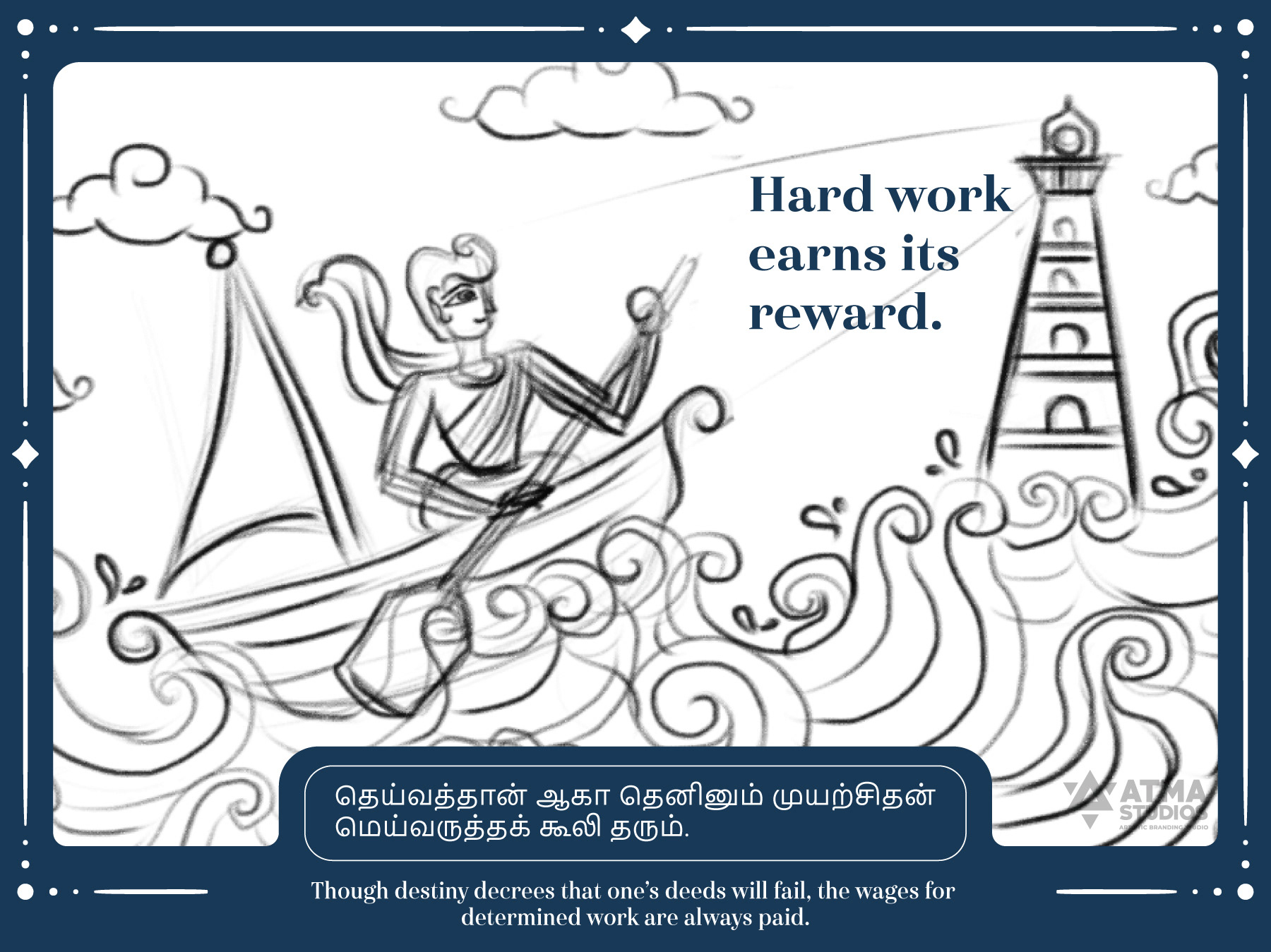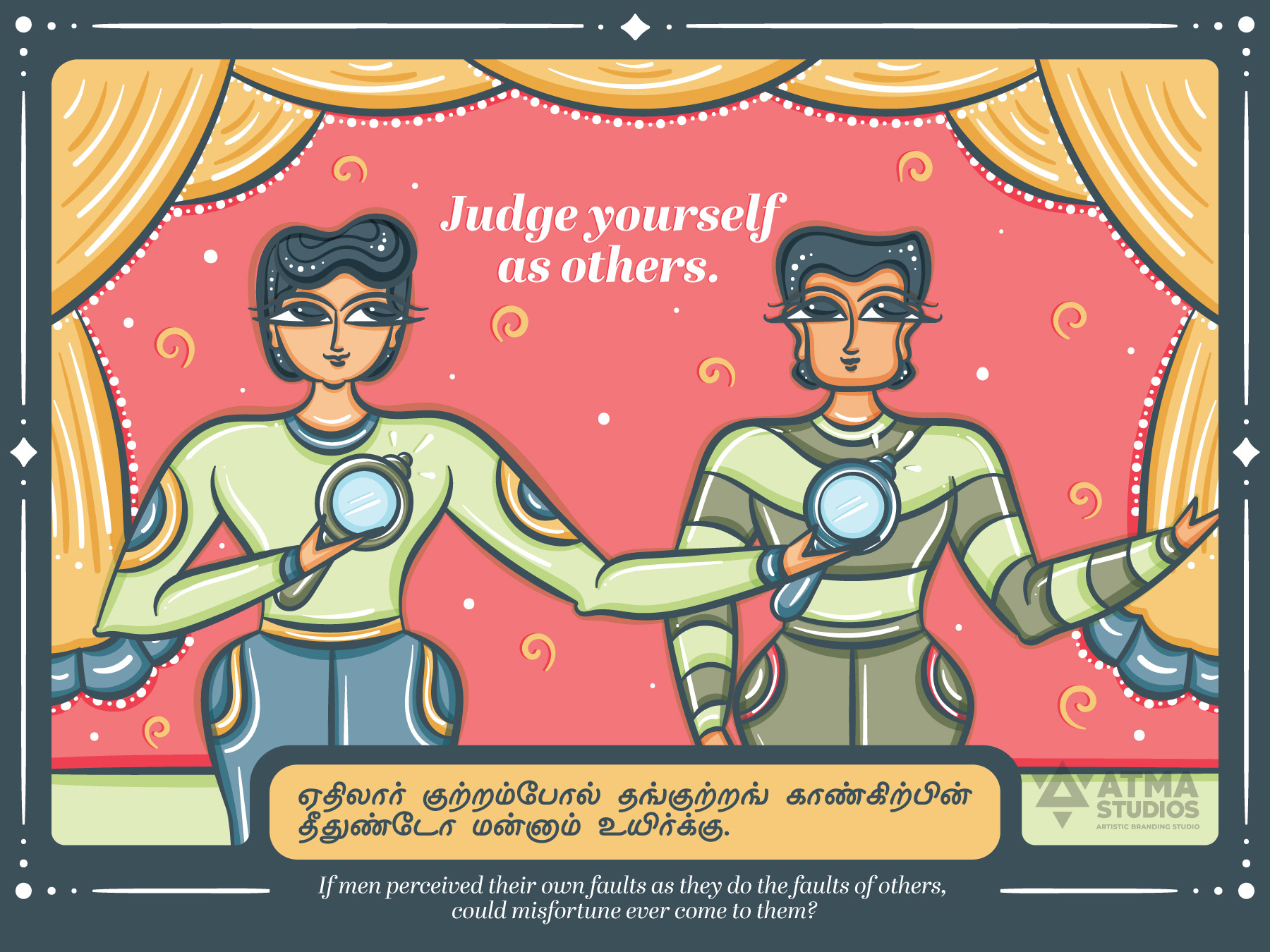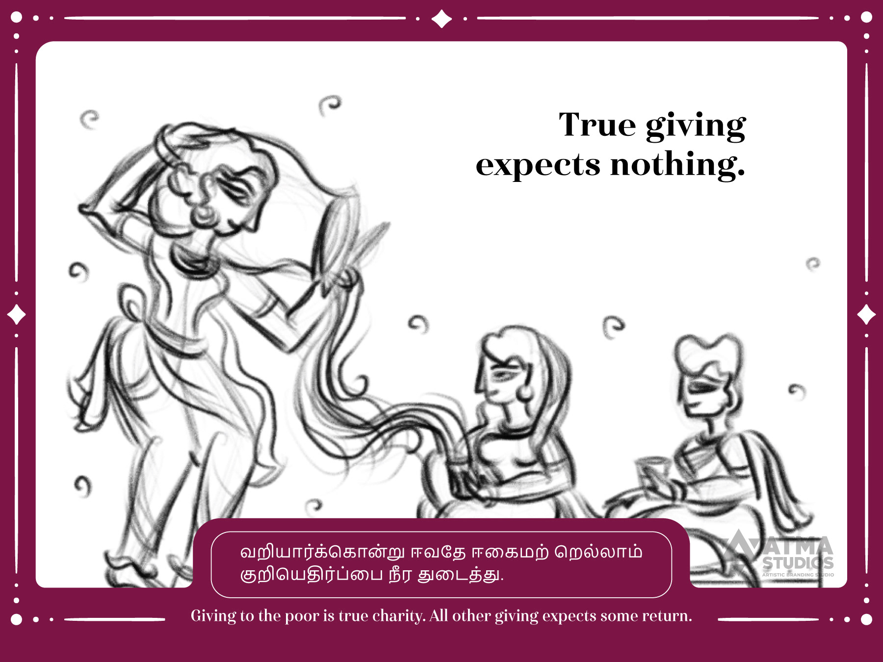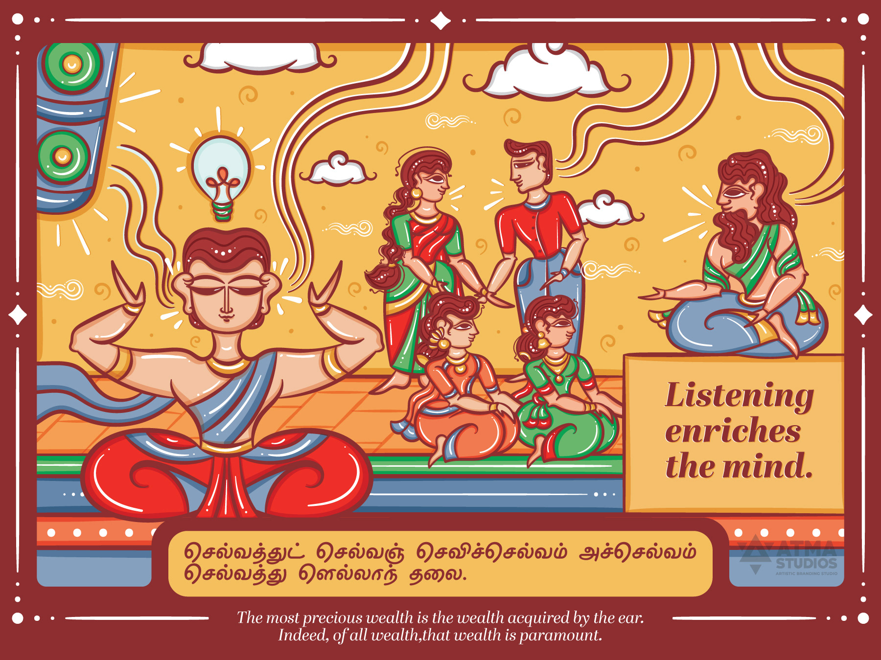 JC Residency’s founder, an ardent admirer of Neo Bengal Folk Art, envisioned a unique and culturally resonant 2025 calendar featuring 12 bespoke illustrations inspired by Thirukkural. Given the ambitious scope and timeline, SCD Balaji proposed an exceptional alternative: entrusting the project to an equally proficient artist and Artpreneur Online Program alumnus, Vinodhini N Durai, founder of Pastelwand Studios. Vinodhini’s expertise in Neo Bengal Folk Art, coupled with her professional finesse and dedication, made her the perfect candidate to bring this vision to life. Her involvement ensured the project’s seamless execution, maintaining Atma Studios’ standard of excellence while delivering a fresh and inspired interpretation. • Creative Direction: SCD Balaji, Atma Studios • Illustrations: Vinodhini N Durai, Pastelwand Studios