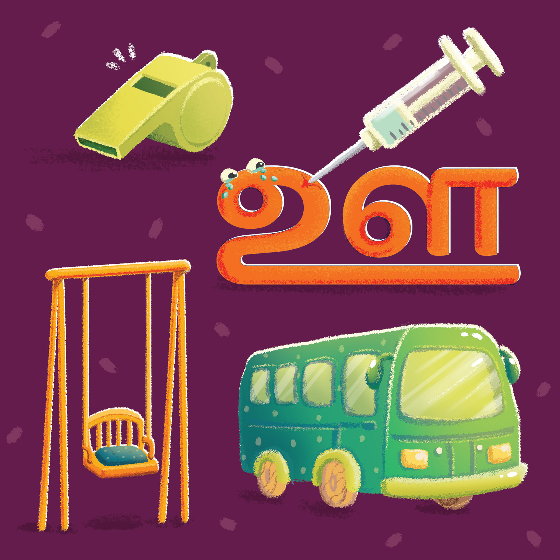 Tamizh language, with 4-5 supporting words with illustrations for each of them.
